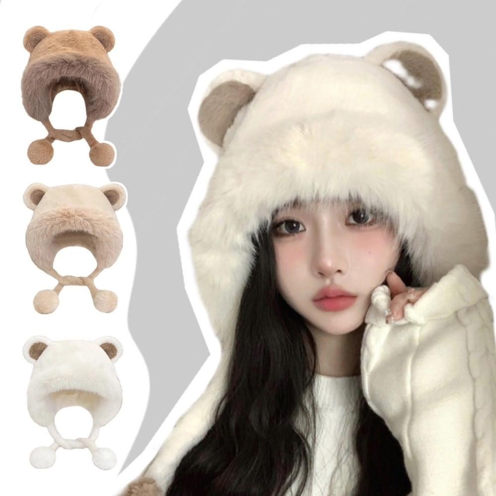 🔥小熊毛絨帽🔥 MHB01 親膚保暖 保暖帽 毛球帽 內絨 毛帽 球球毛帽 秋冬毛帽 雙面毛絨帽 小熊帽 球球帽