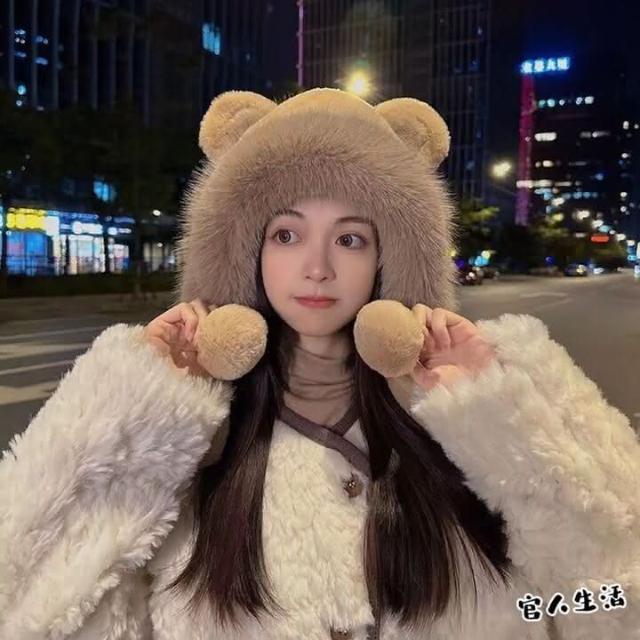 🔥小熊毛絨帽🔥 MHB01 親膚保暖 保暖帽 毛球帽 內絨 毛帽 球球毛帽 秋冬毛帽 雙面毛絨帽 小熊帽 球球帽