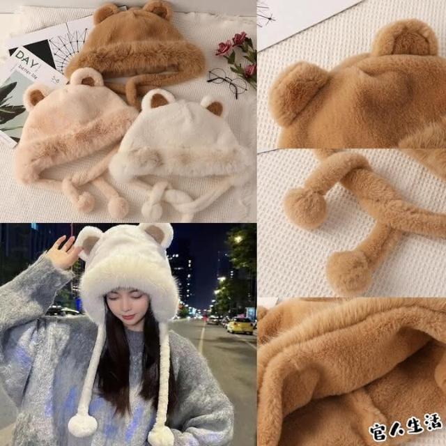 🔥小熊毛絨帽🔥 MHB01 親膚保暖 保暖帽 毛球帽 內絨 毛帽 球球毛帽 秋冬毛帽 雙面毛絨帽 小熊帽 球球帽