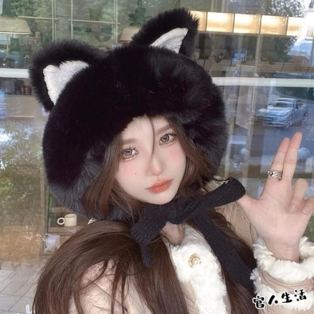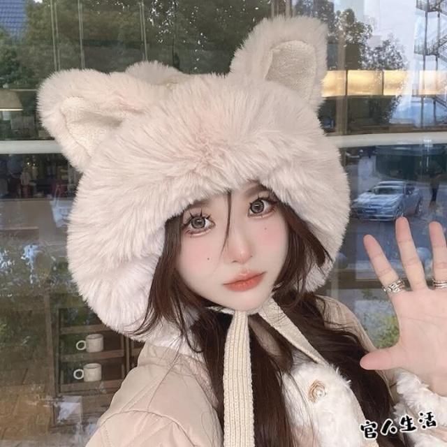 🔥狐狸耳多毛帽🔥HB03 毛絨絨帽子 綁帶雷鋒帽 女韓版帽 狐狸耳多 百搭秋冬針織帽 護耳帽 寒流 可愛帽 日系冬季帽