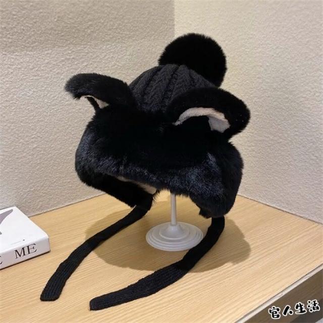 🔥狐狸耳多毛帽🔥HB03 毛絨絨帽子 綁帶雷鋒帽 女韓版帽 狐狸耳多 百搭秋冬針織帽 護耳帽 寒流 可愛帽 日系冬季帽
