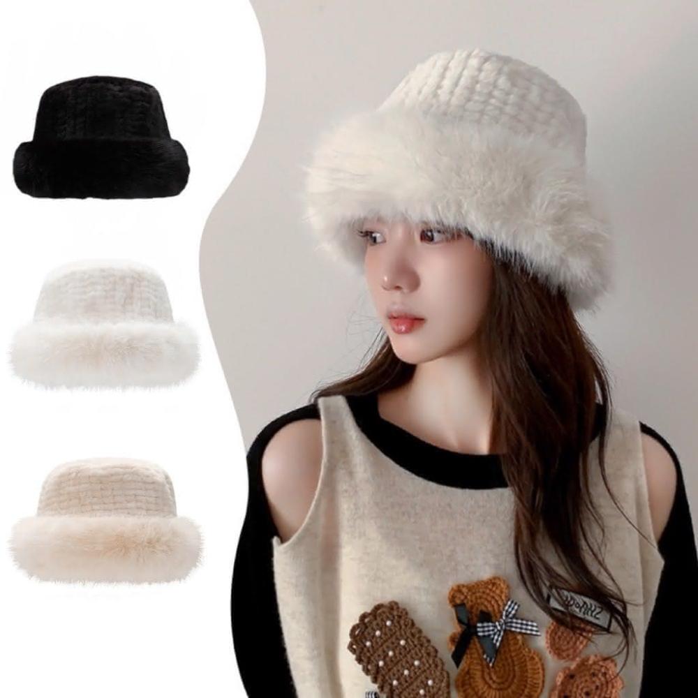 🔥加厚漁夫帽🔥 MHN08 仿皮草貂毛帽 女冬天毛帽 韓版素色 百搭款 加厚保暖帽 蓬鬆漁夫帽 毛毛帽子 寒流 下雪帽