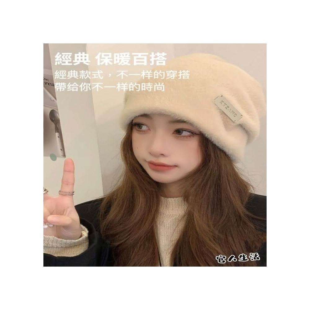 🔥毛絨堆堆帽 MHN18 金屬標 仿貂毛 保暖帽 內絨 毛帽 球毛帽 秋冬毛帽 雙面毛絨帽 小熊帽 球球帽 韓版最新