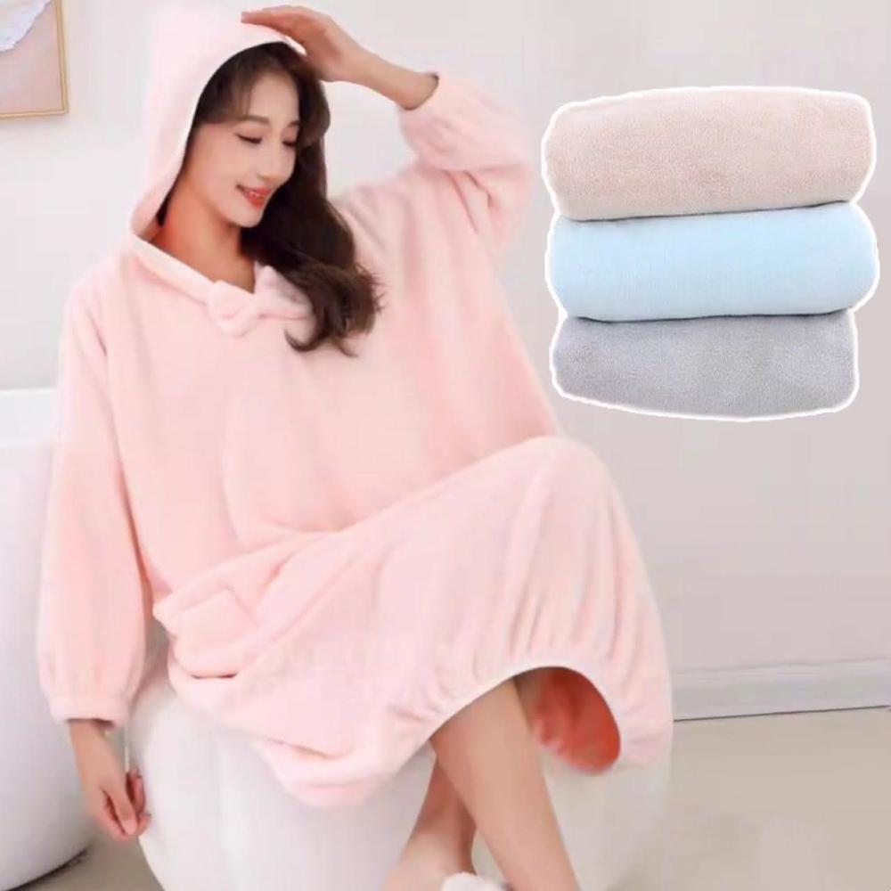🔥 長袖版浴裙 🔥 MTS09 長袖浴袍 浴袍女 女生浴裙 可穿式浴巾 吸水浴裙 珊瑚絨浴裙 強力吸水 浴巾加大 胖胖可穿