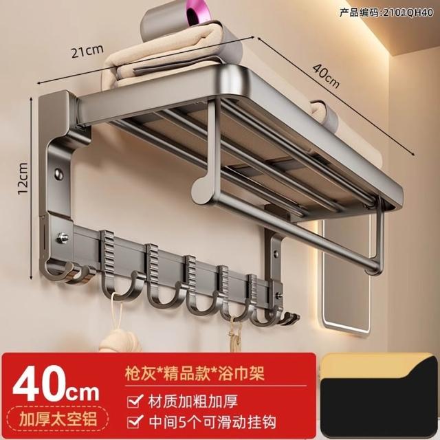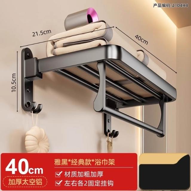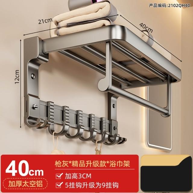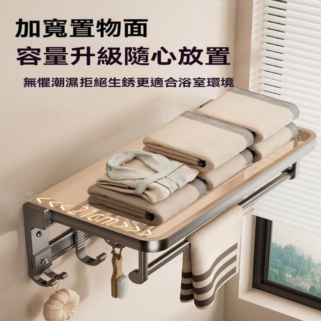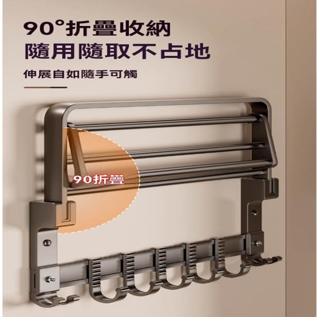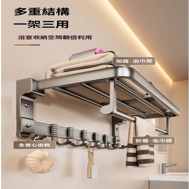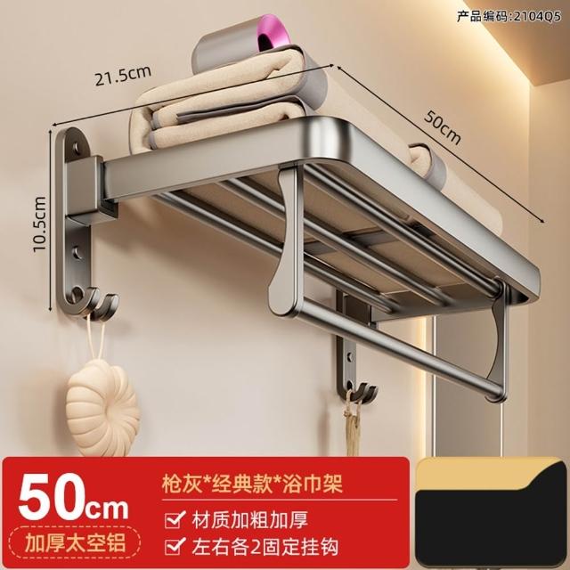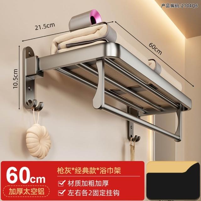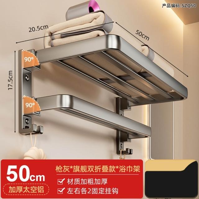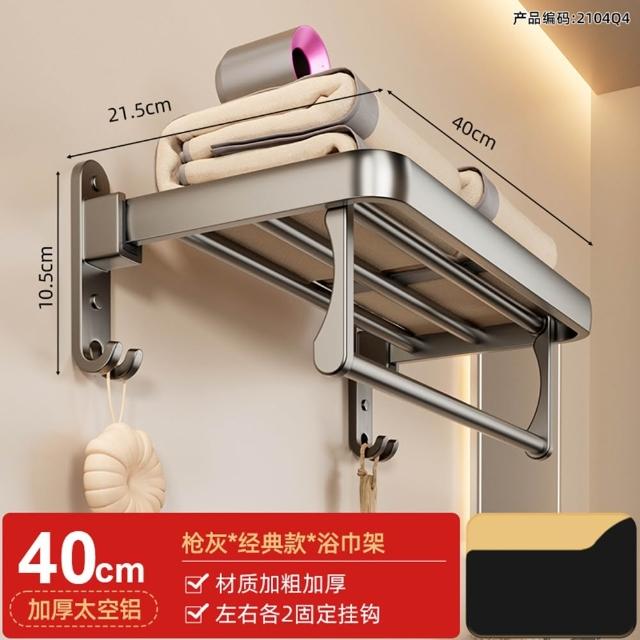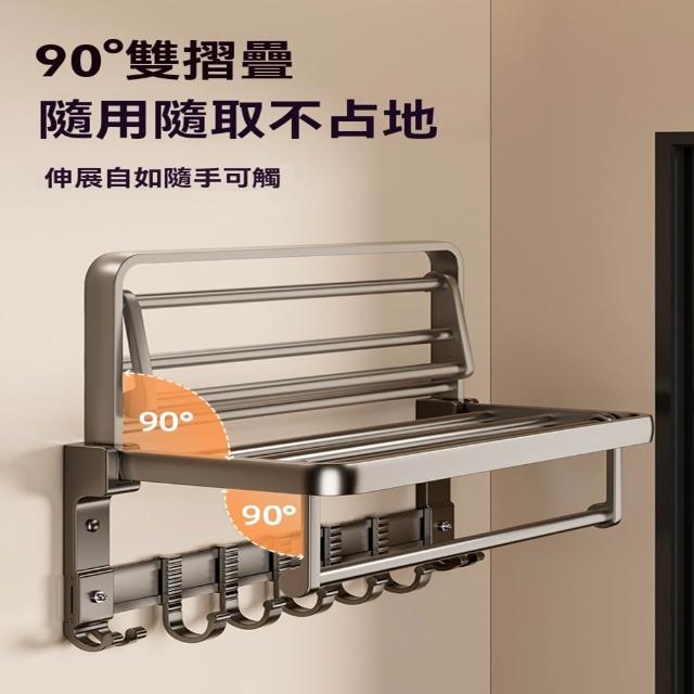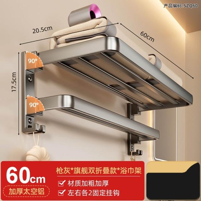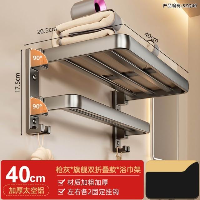 赫朗 折疊毛巾架 免打孔 置物架 浴室毛巾置物架 浴室收納架 加厚太空鋁 40-70cm可選(免打孔安裝/90°雙折疊)