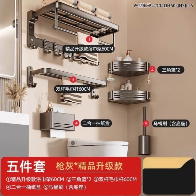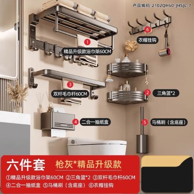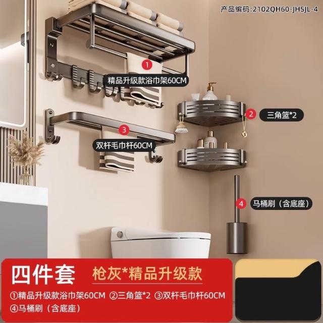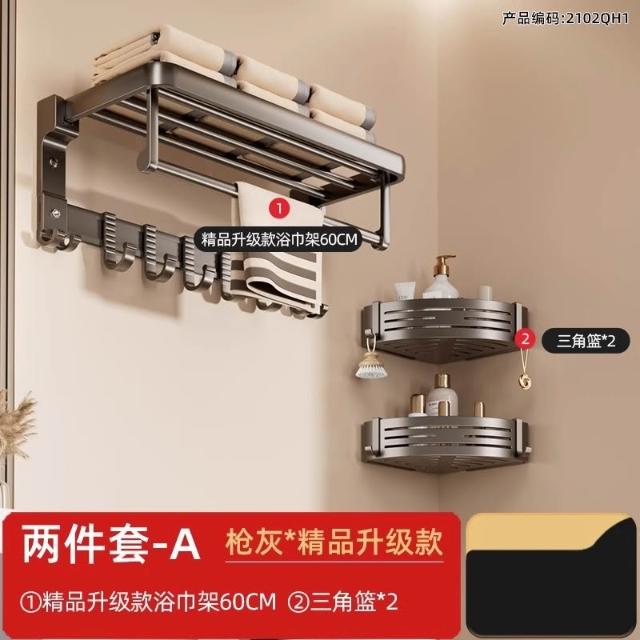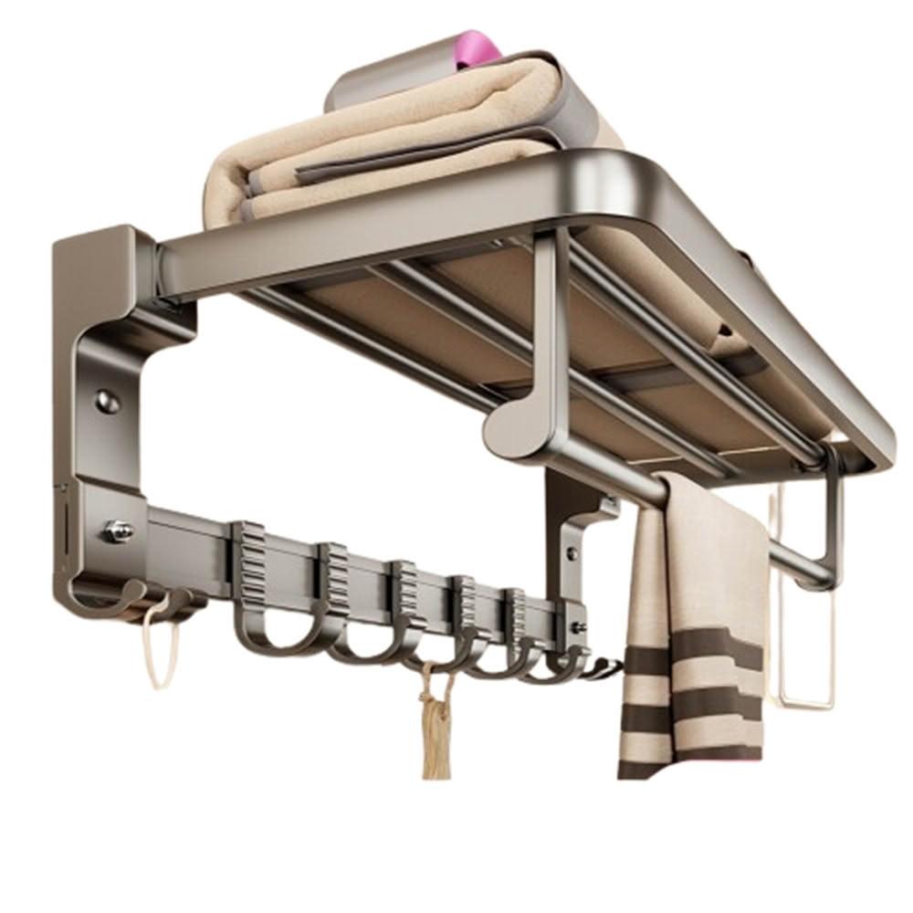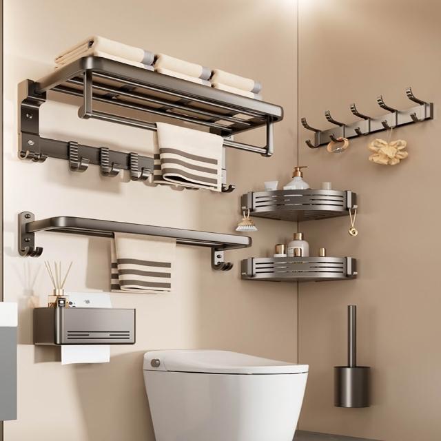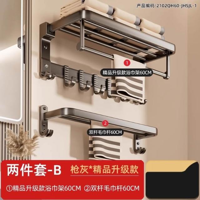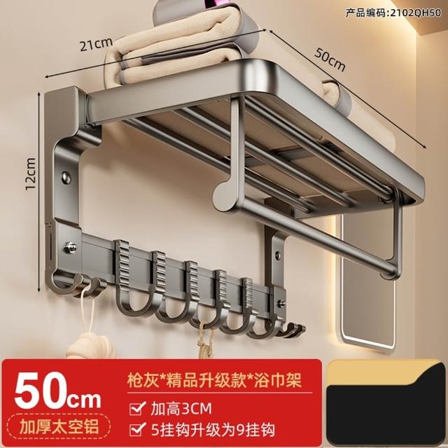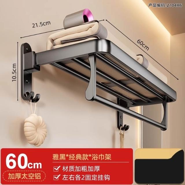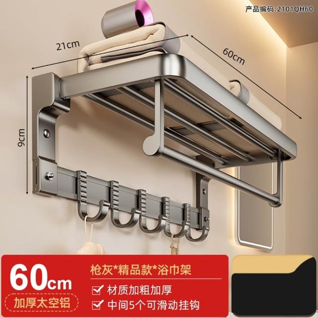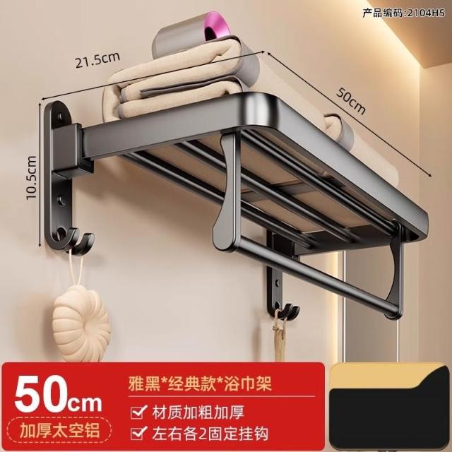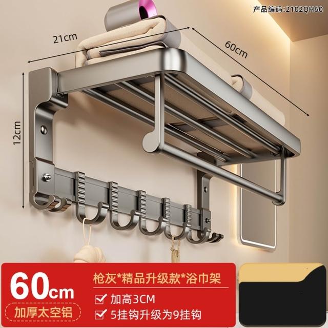 赫朗 折疊毛巾架 免打孔 置物架 浴室毛巾置物架 浴室收納架 加厚太空鋁 40-70cm可選(免打孔安裝/90°雙折疊)