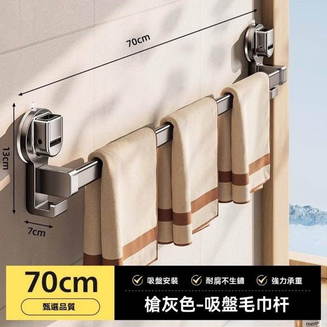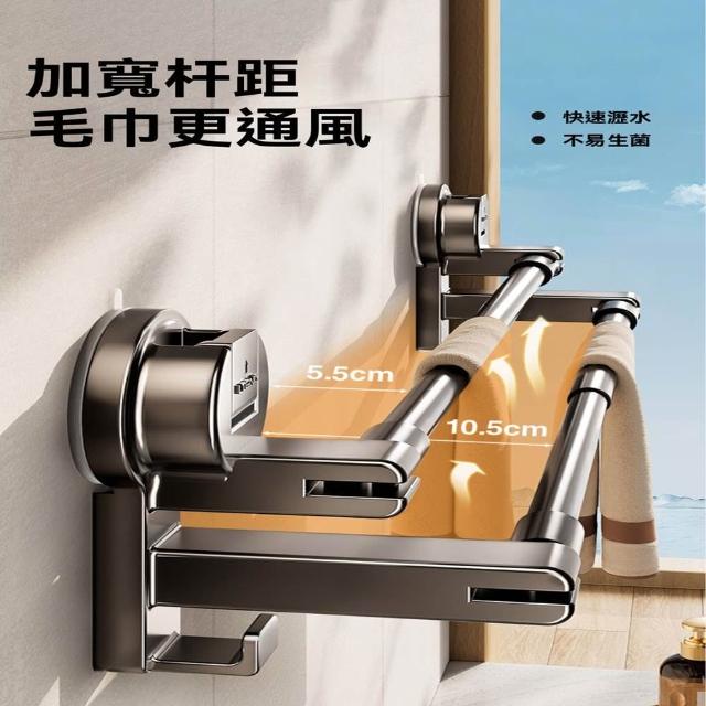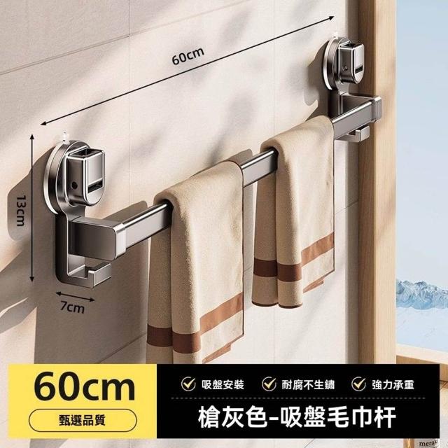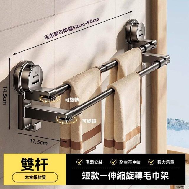 赫朗 吸盤毛巾架 伸縮毛巾桿 浴室架 毛巾架 拆卸不留痕 吸盤安裝(62-112cm自由伸縮/強力吸附於/自由旋轉)
