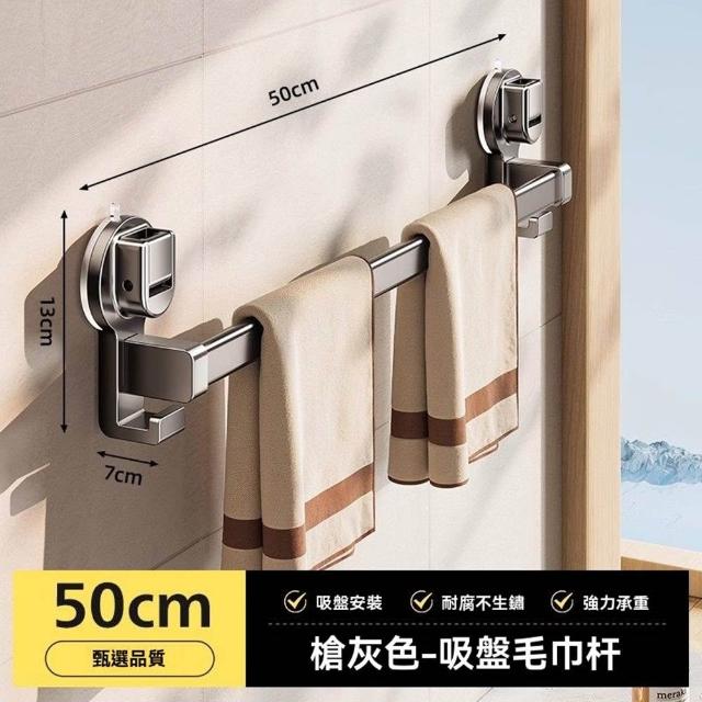 赫朗 吸盤毛巾架 伸縮毛巾桿 浴室架 毛巾架 拆卸不留痕 吸盤安裝(62-112cm自由伸縮/強力吸附於/自由旋轉)