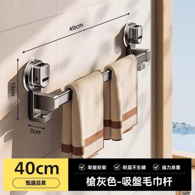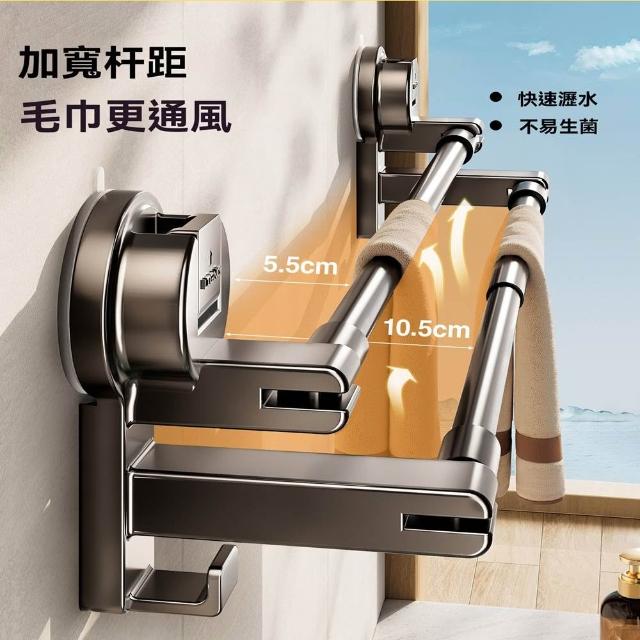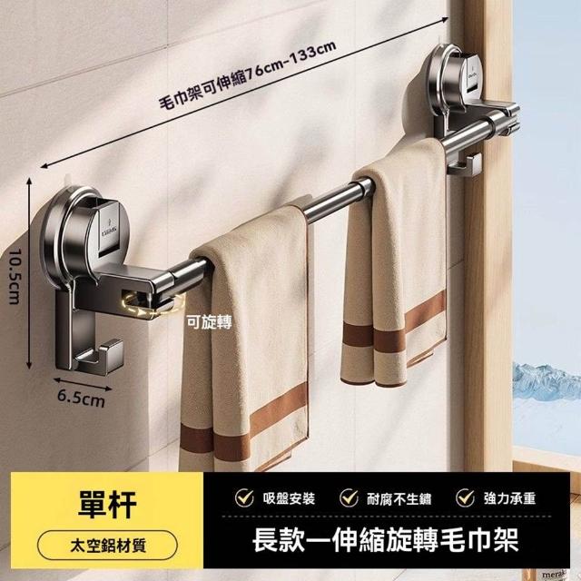 赫朗 吸盤毛巾架 伸縮毛巾桿 浴室架 毛巾架 拆卸不留痕 吸盤安裝(62-112cm自由伸縮/強力吸附於/自由旋轉)