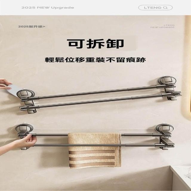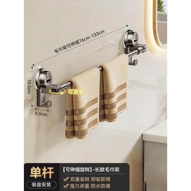 赫朗 吸盤毛巾架 免打孔伸縮毛巾桿 浴室收納架 吸盤置物架 浴室毛巾架 壁掛架 浴巾架(雙重吸附即吸即用/可伸縮可旋轉)