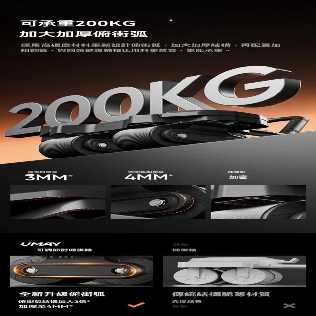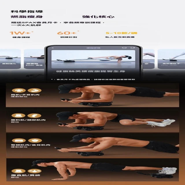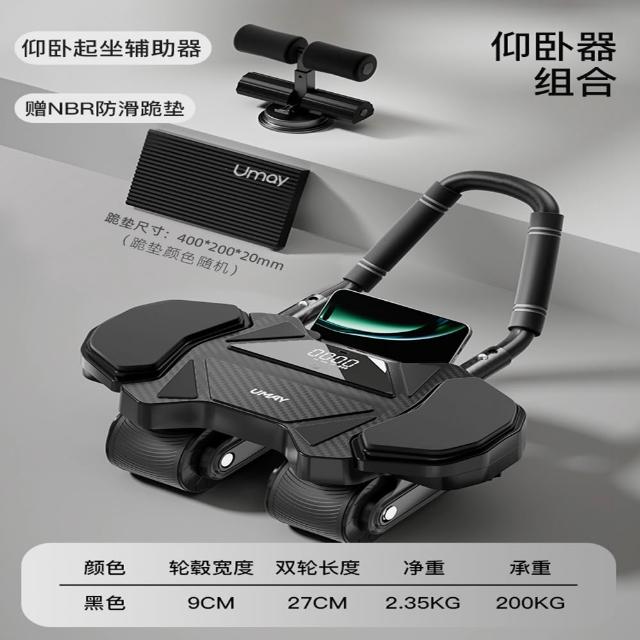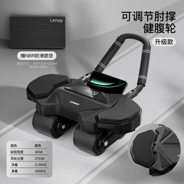 赫朗 健腹輪 卷腹輪 腹肌輪 四軸健腹輪 練腹肌神器 腹肌滾輪 全方位健身器 自動回彈(400斤承重/自帶手機支架/智能計數)