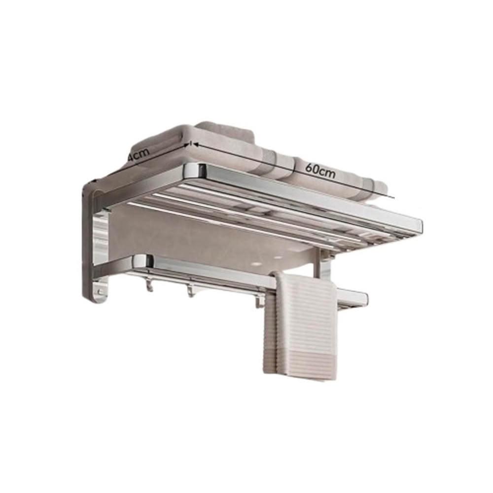 赫朗 304不鏽鋼毛巾架 浴巾架 浴室毛巾架 毛巾架 浴室置物架 置物掛架(免打孔壁掛式/雙層可折疊置物架/90°折疊)