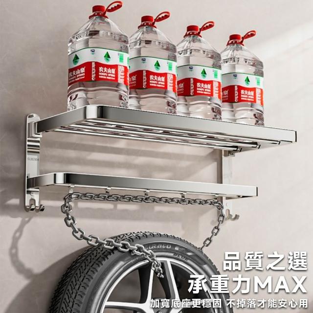 赫朗 304不鏽鋼毛巾架 浴巾架 浴室毛巾架 毛巾架 浴室置物架 置物掛架(免打孔壁掛式/雙層可折疊置物架/90°折疊)