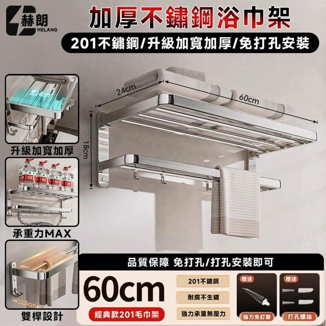 赫朗 304不鏽鋼毛巾架 浴巾架 浴室毛巾架 毛巾架 浴室置物架 置物掛架(免打孔壁掛式/雙層可折疊置物架/90°折疊)