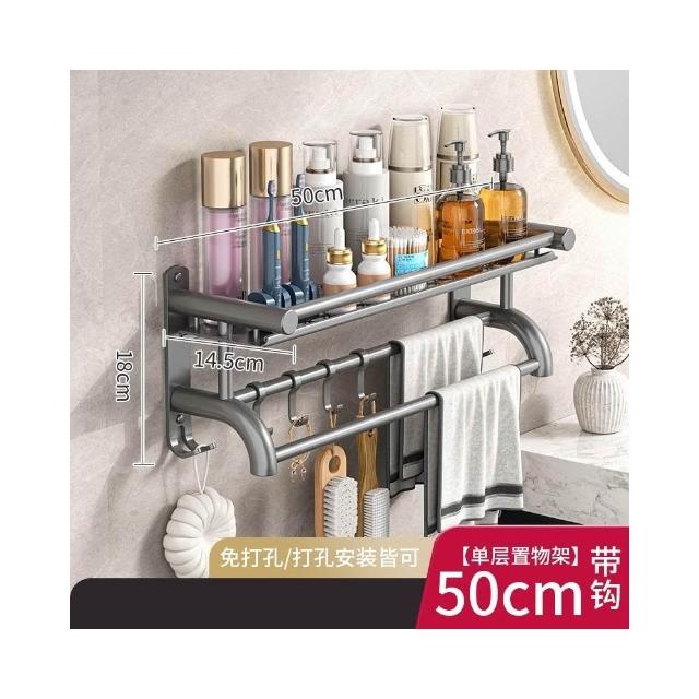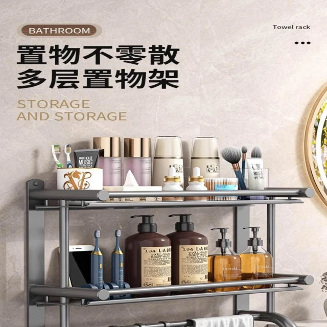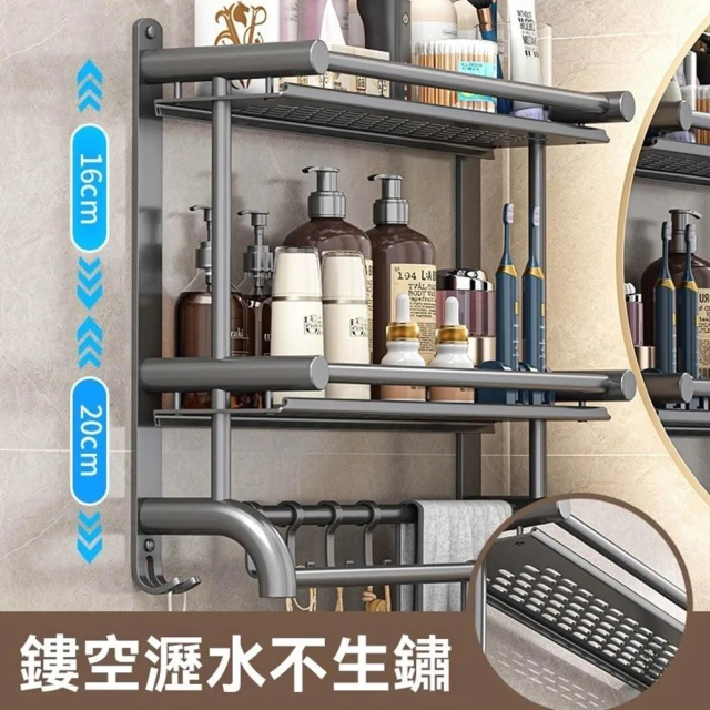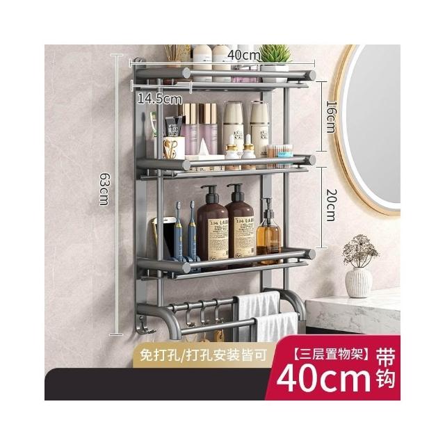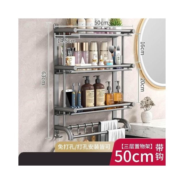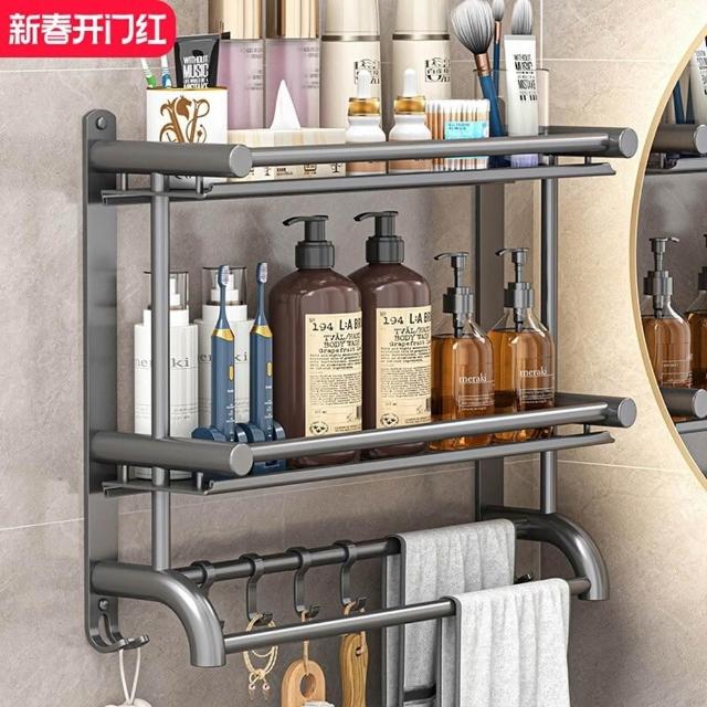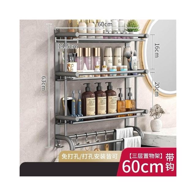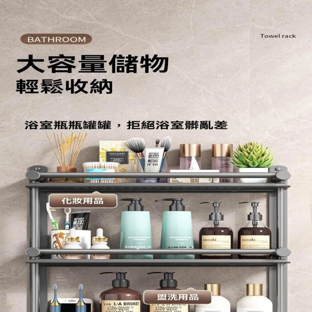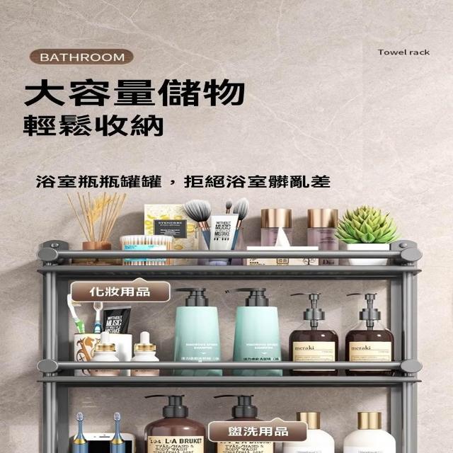 赫朗 壁掛多層毛巾架 壁掛 浴室 衛生間 收納用品置物架 浴室毛巾架 浴室收納架 (免打孔不銹鋼/多層/加高護欄)