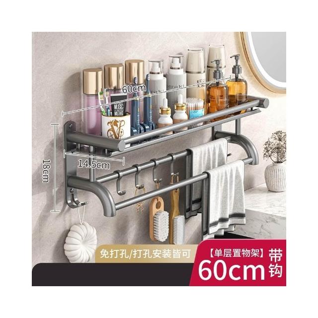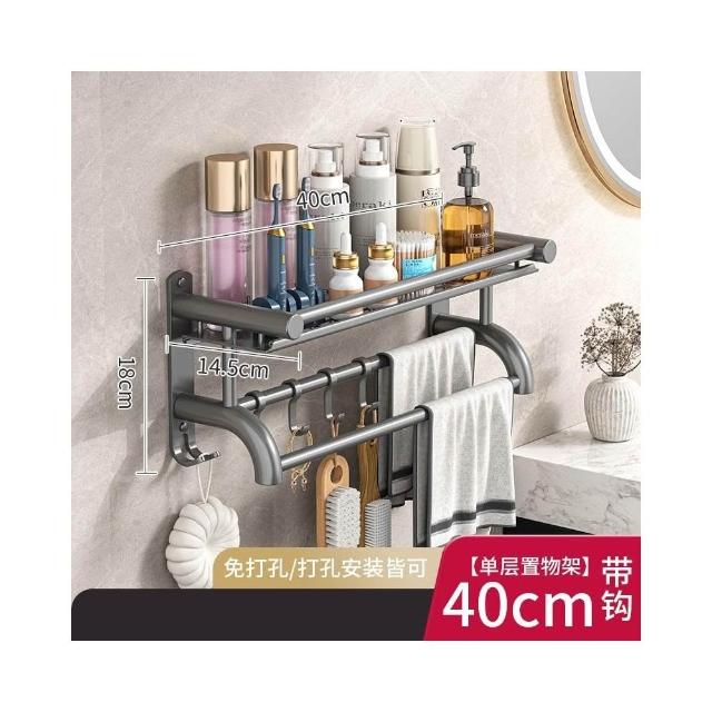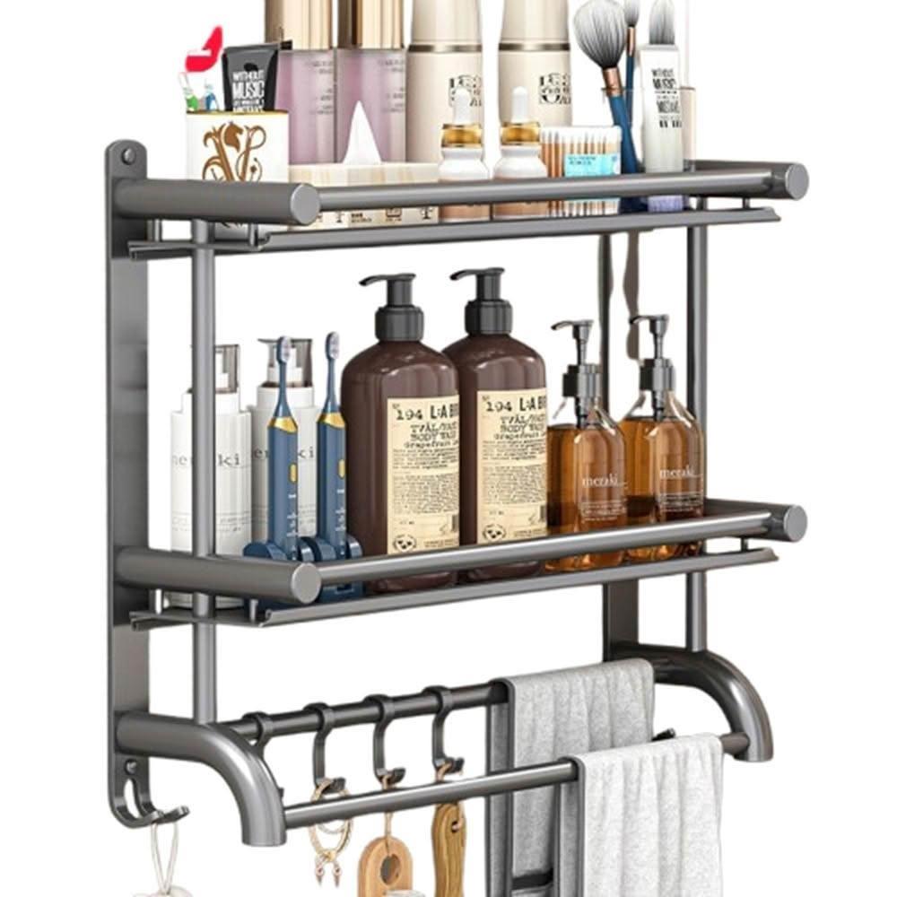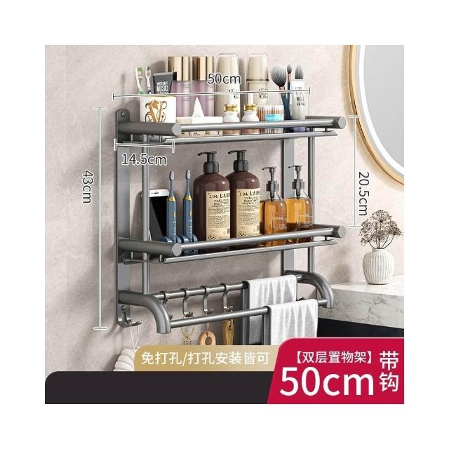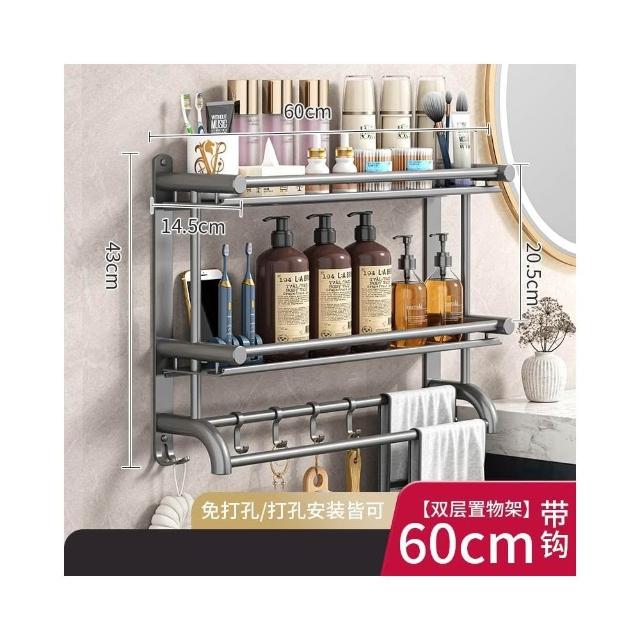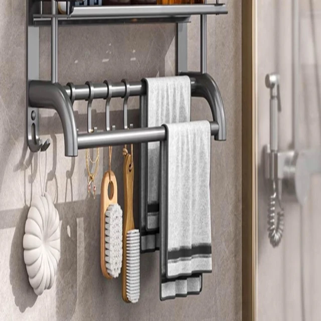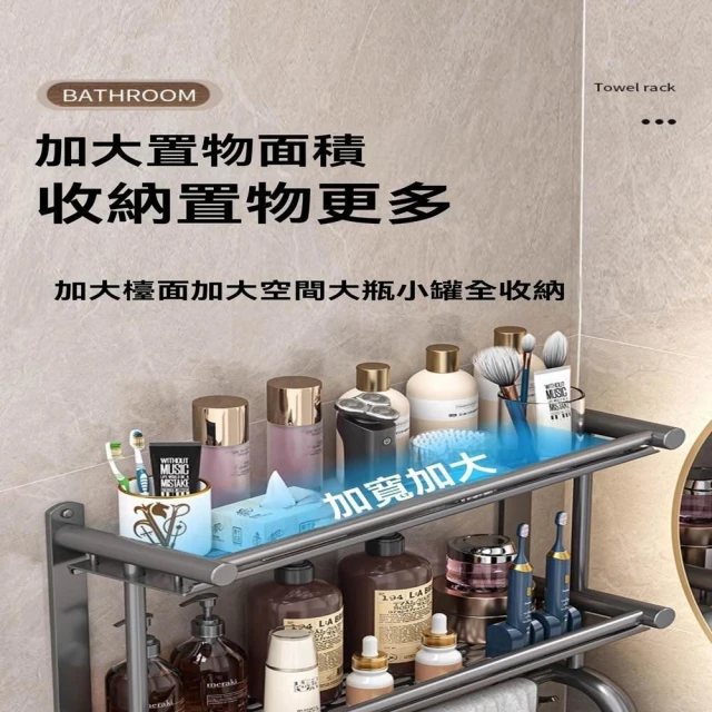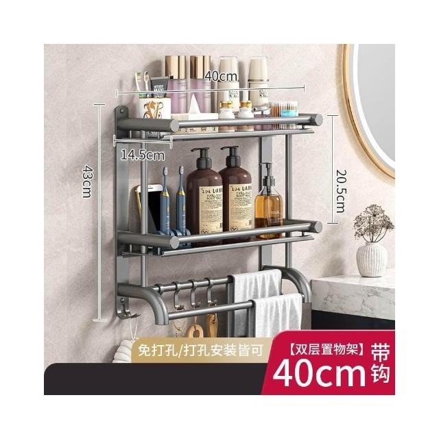 赫朗 壁掛多層毛巾架 壁掛 浴室 衛生間 收納用品置物架 浴室毛巾架 浴室收納架 (免打孔不銹鋼/多層/加高護欄)