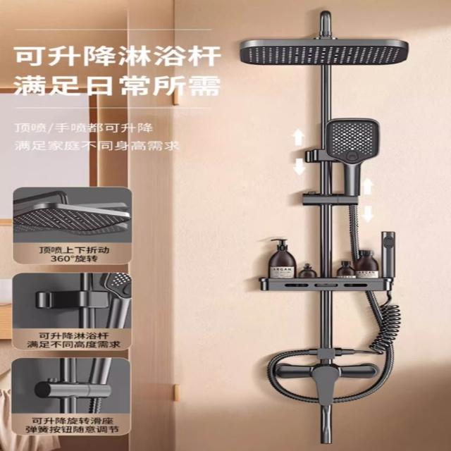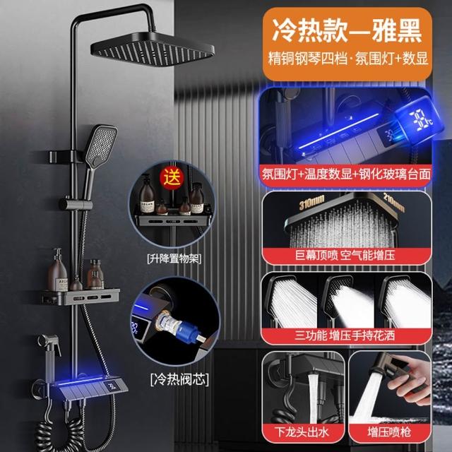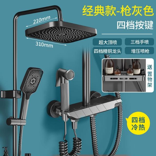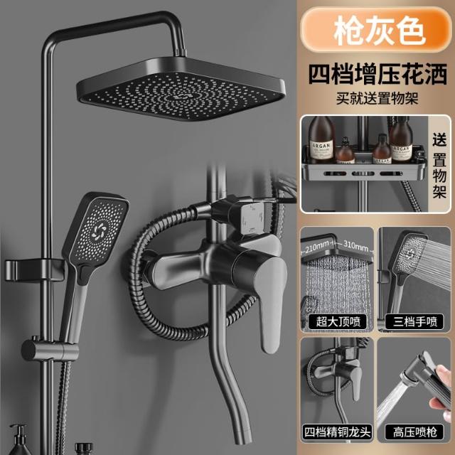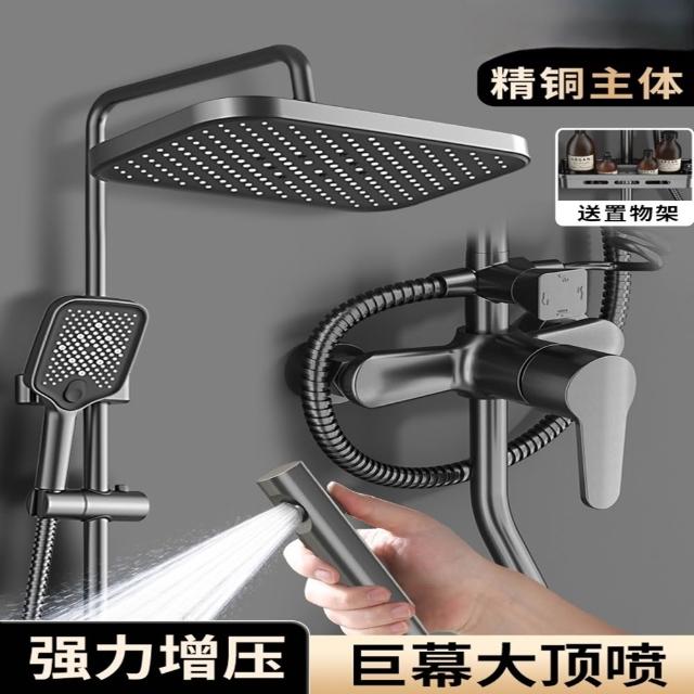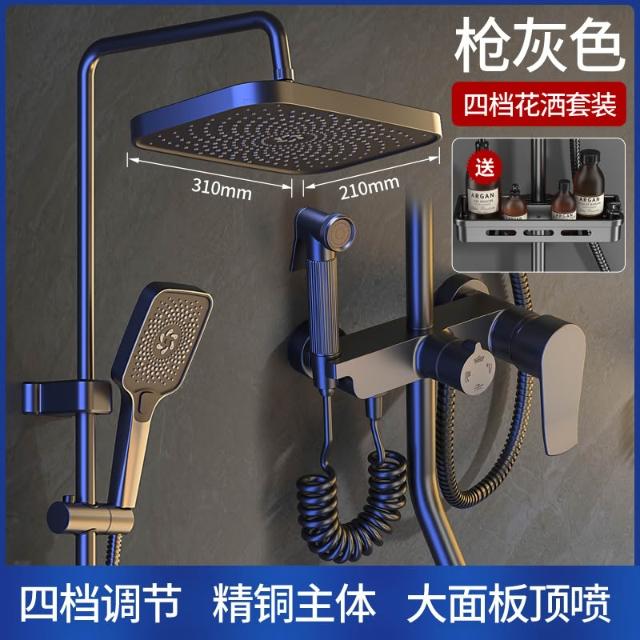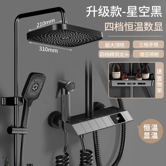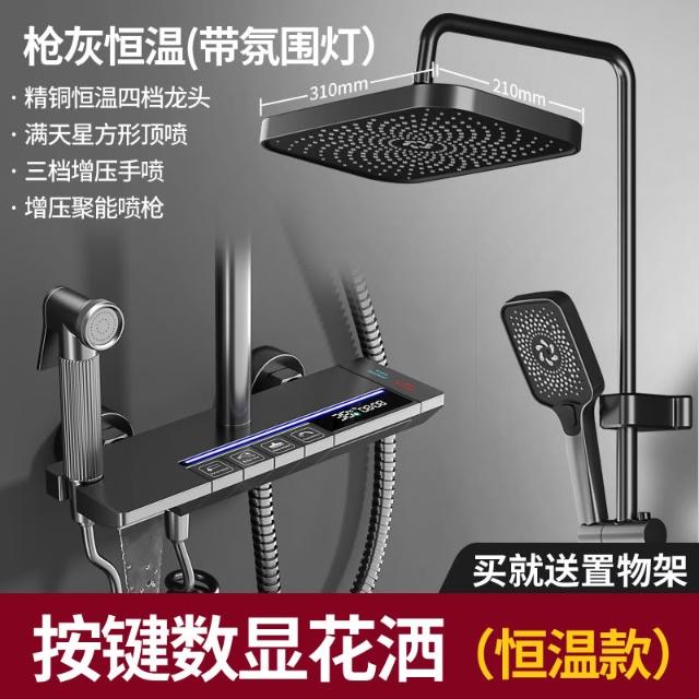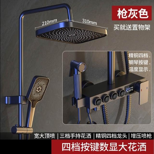 赫朗 大頂噴淋浴花灑套裝 槍灰銅浴室衛生間沐浴花灑蓮蓬頭 衛浴冷熱水龍頭 雙花灑套裝 (數顯恆溫/冷熱雙控/四擋調節/超大頂噴)