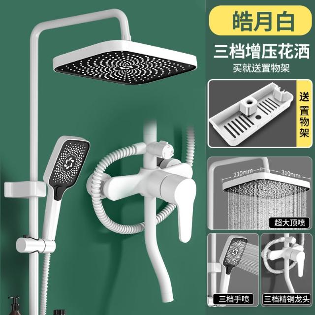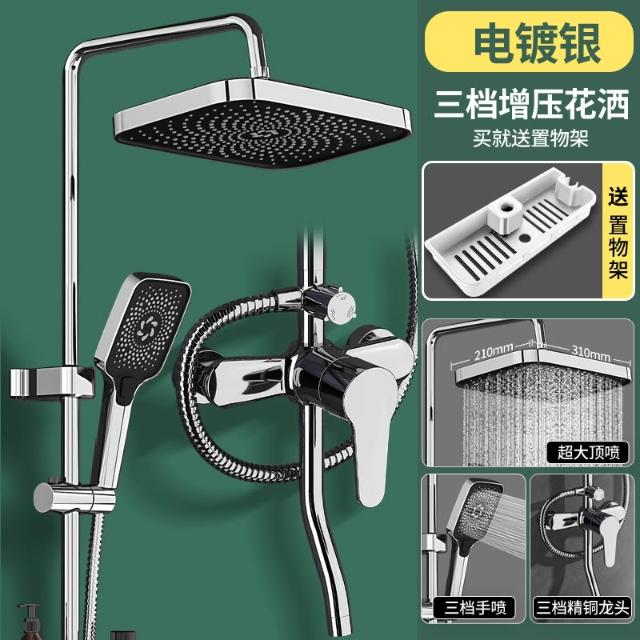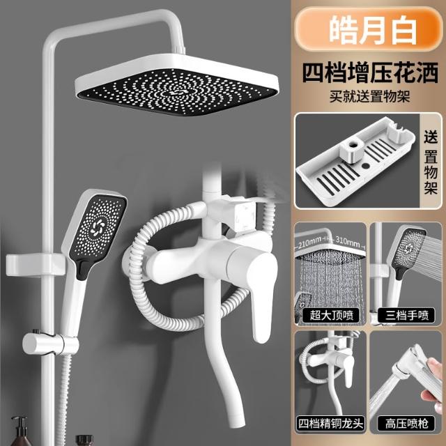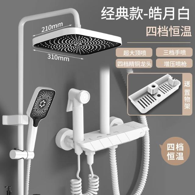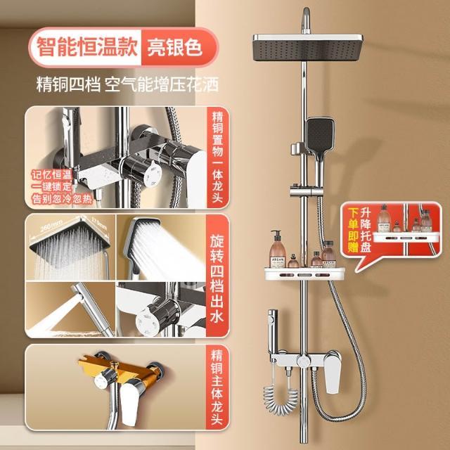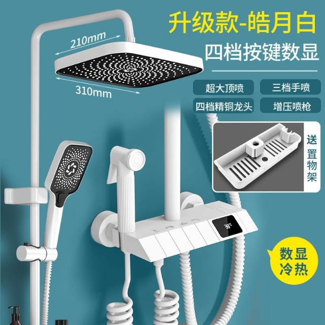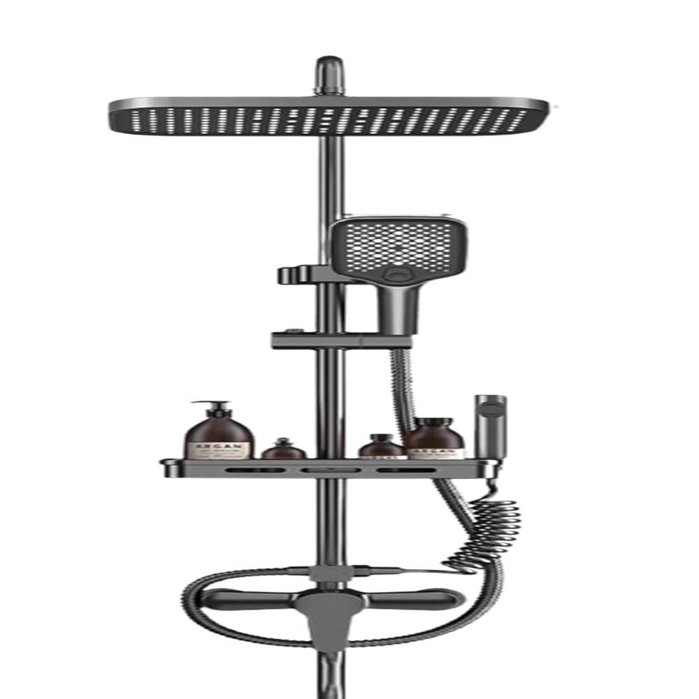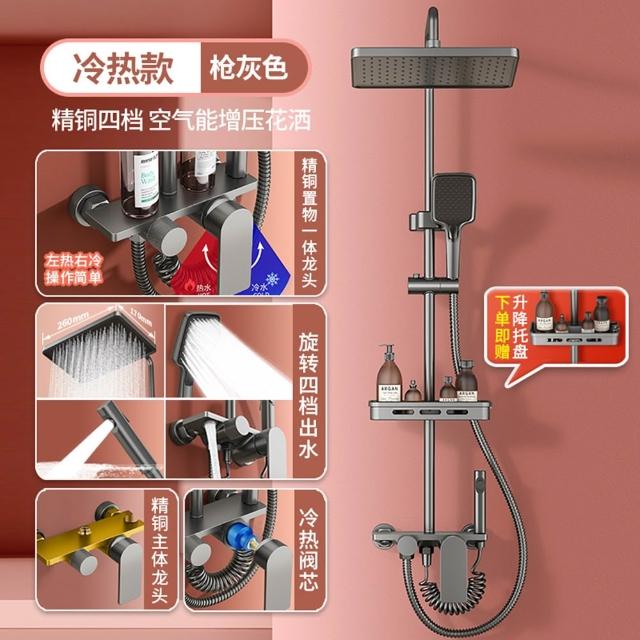 赫朗 大頂噴淋浴花灑套裝 槍灰銅浴室衛生間沐浴花灑蓮蓬頭 衛浴冷熱水龍頭 雙花灑套裝 (數顯恆溫/冷熱雙控/四擋調節/超大頂噴)