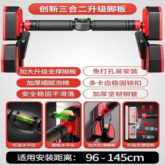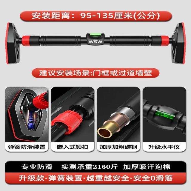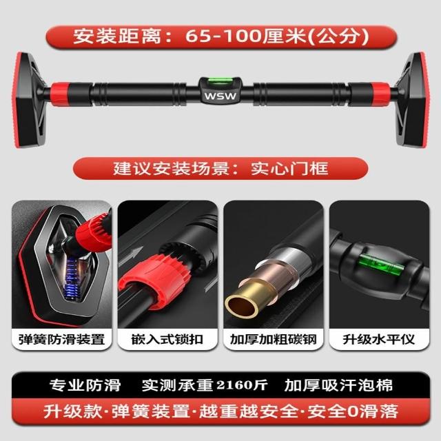 赫朗 門上單杠 可伸縮槓桿 引體向上器 免打孔單杠 健身桿 健身單槓(防滑智能彈簧款/加厚加粗碳鋼/適用多種牆面)