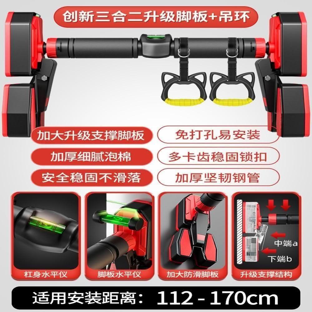 赫朗 門上單杠 可伸縮槓桿 引體向上器 免打孔單杠 健身桿 健身單槓(防滑智能彈簧款/加厚加粗碳鋼/適用多種牆面)