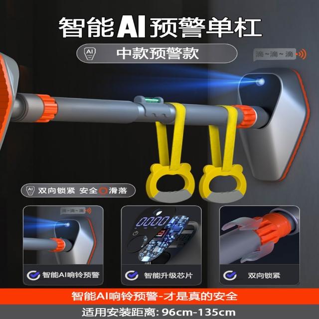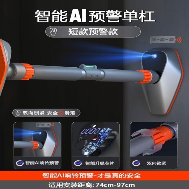 赫朗 智能預警單杠 門上單杠 引體向上器 引體向上桿 免打孔單杠 家用單杠 健身單杠(AI智能響鈴預警/數顯計數計時/承重900斤)