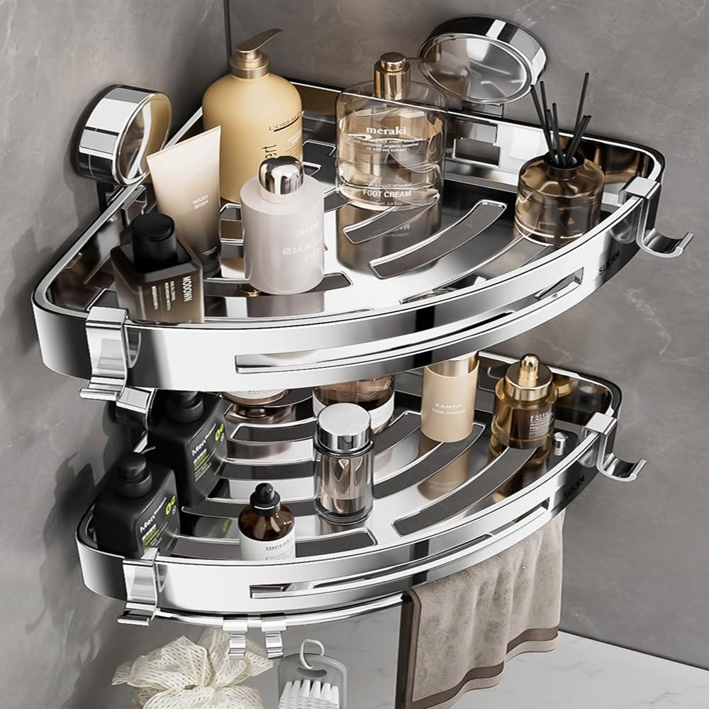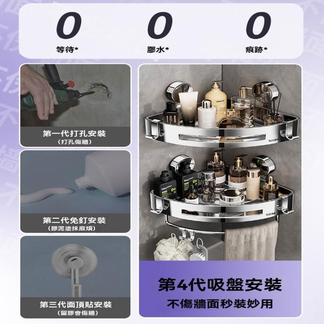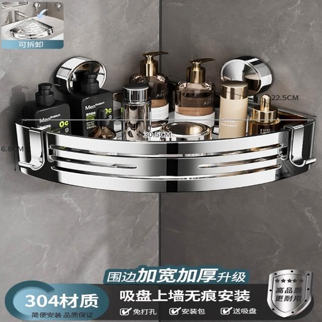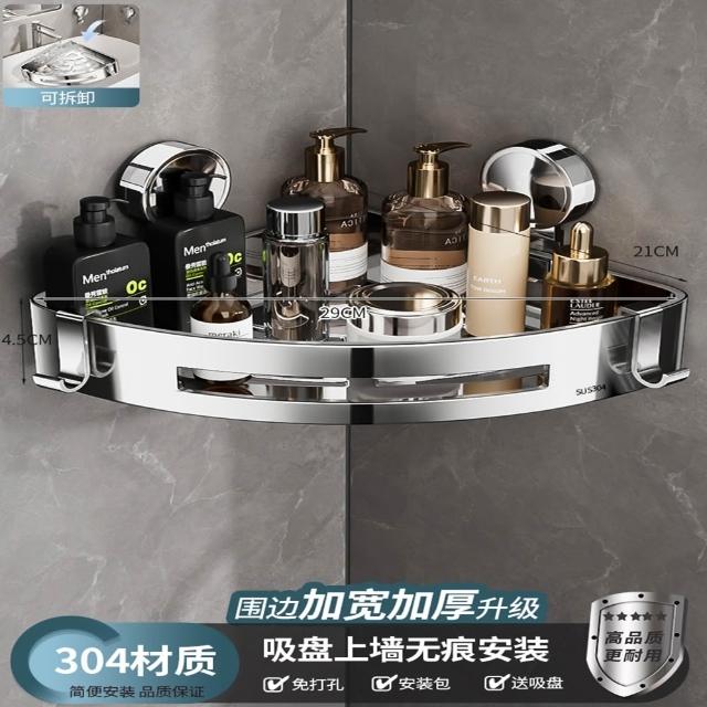 赫朗 浴室吸盤置物架 轉角收納架 免打孔衛生間壁掛架 浴室收納架 (304不銹鋼/鏤空瀝水/可拆卸/帶置物桿)