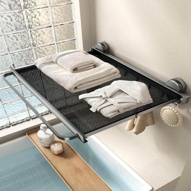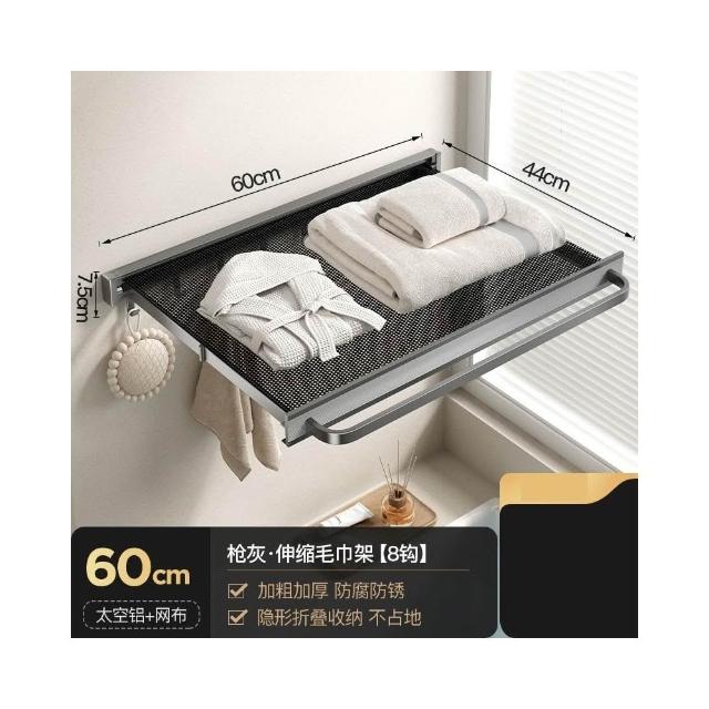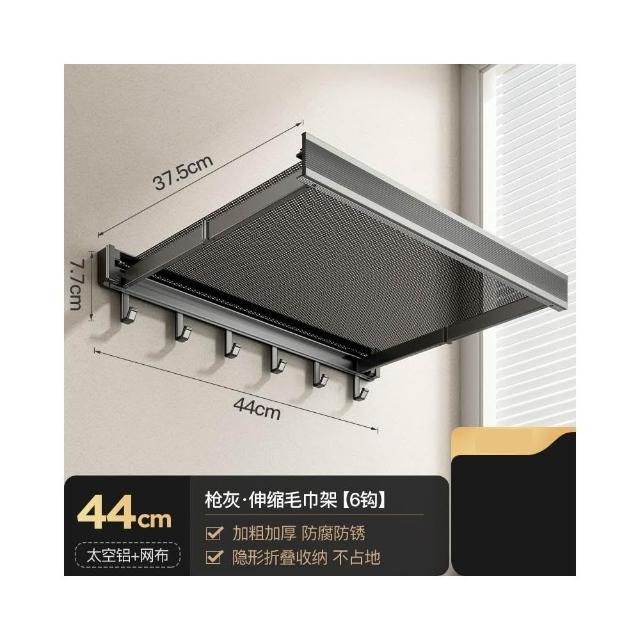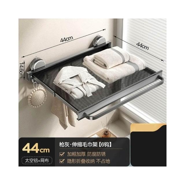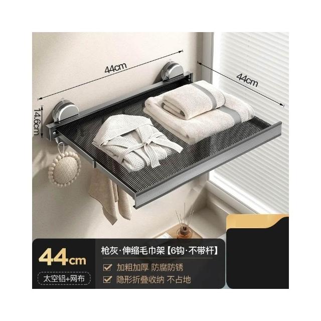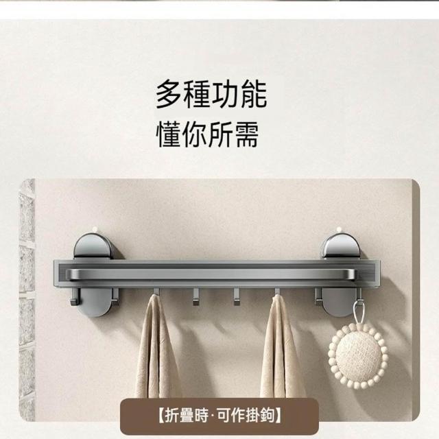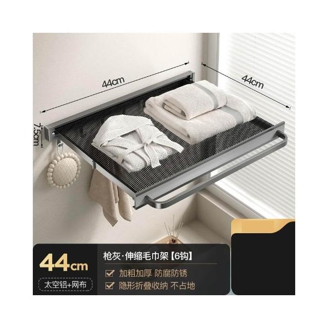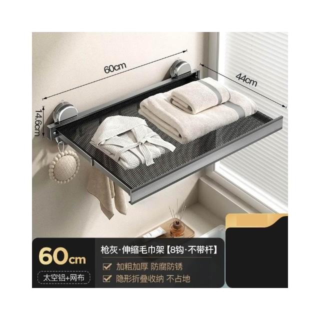 赫朗 吸盤伸縮浴巾架 吸盤隱形伸縮 吸盤式毛巾架 毛巾架 浴室收納架(隱形伸縮/真空氣按鈕吸盤/44CM展開寬度)