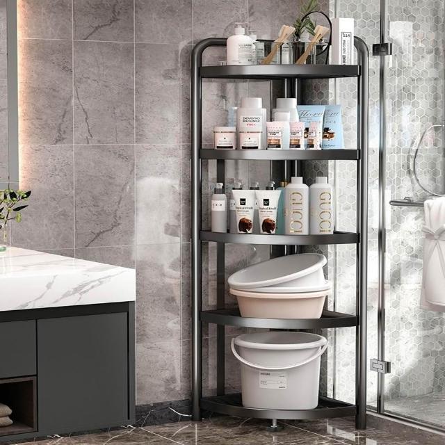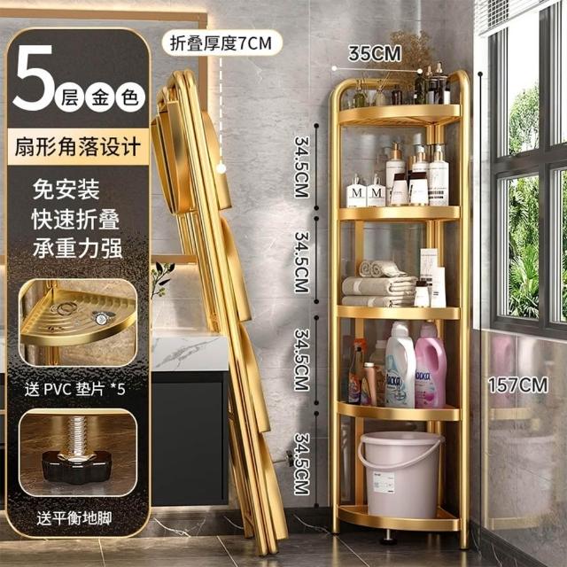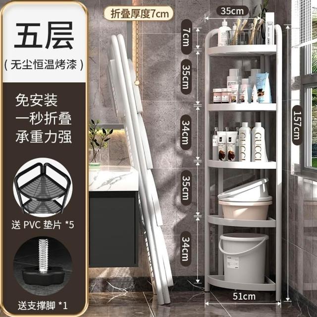 赫朗 浴室轉角置物架 浴室置物架 轉角收納架 折疊收納架 免安裝 置物架(1秒折疊/拉開即用/穩固不晃)