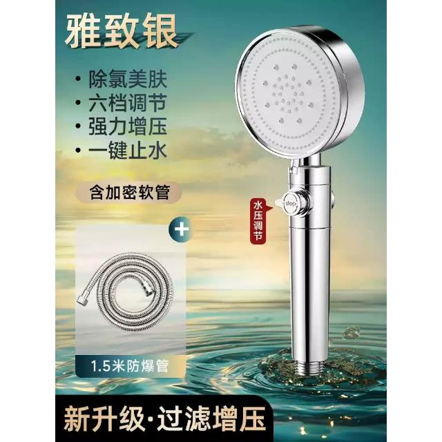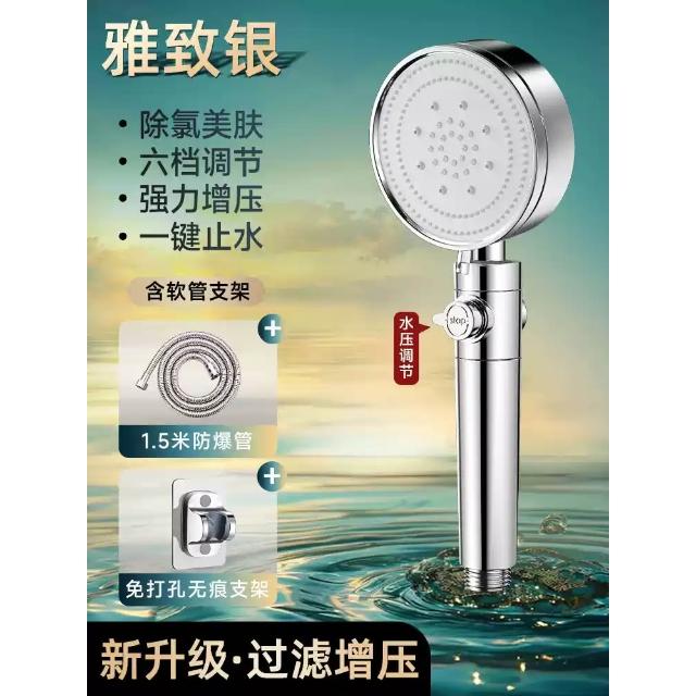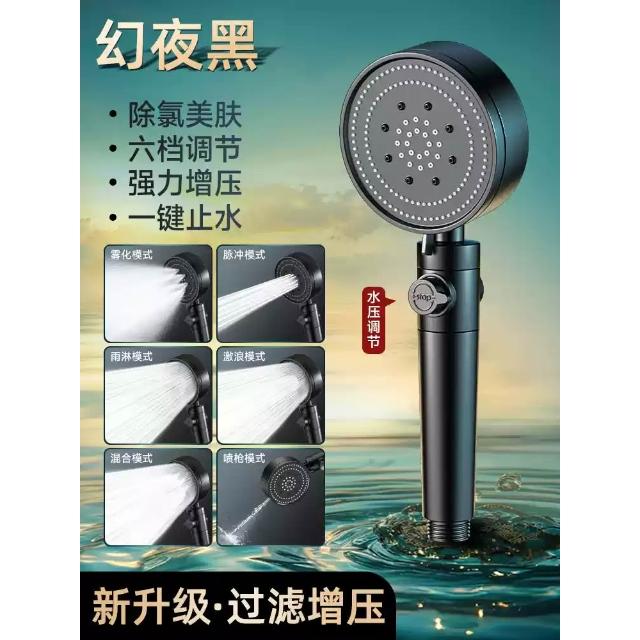 赫朗 增壓密雨蓮蓬頭 加壓淋雨沐浴蓮蓬頭 蓮蓬頭 增壓過濾蓮蓬頭 花灑 大水量淋浴花灑 淋浴蓮蓬頭 通用接口(六檔增壓/一鍵止水)