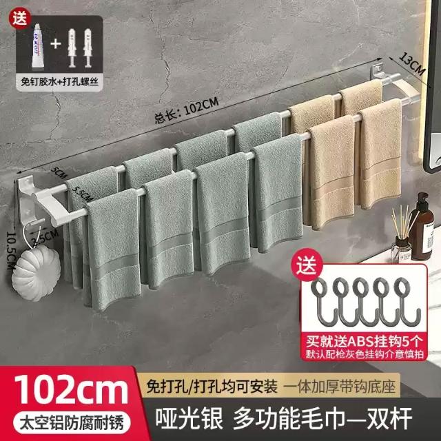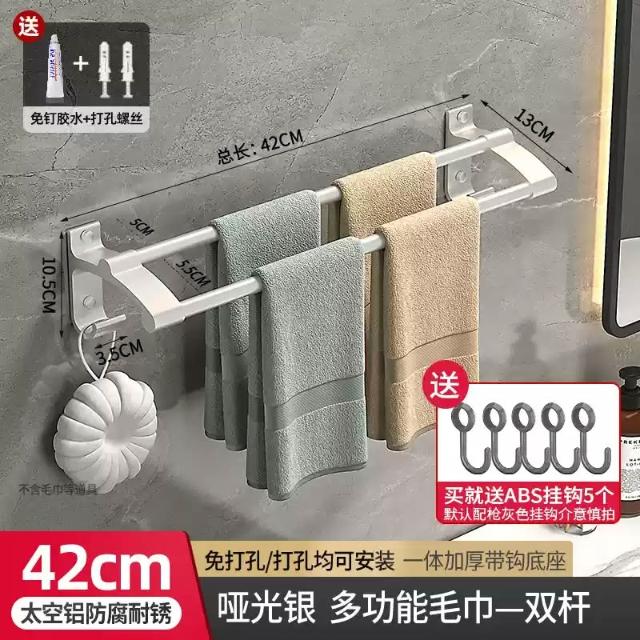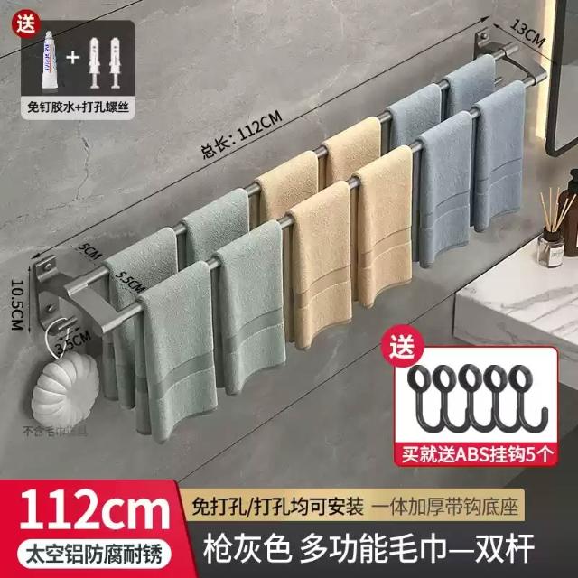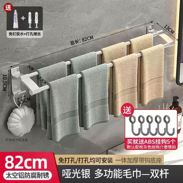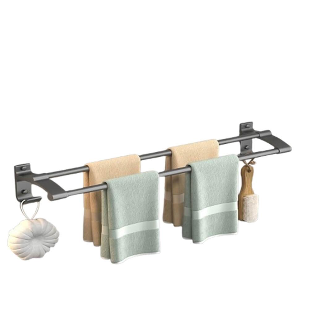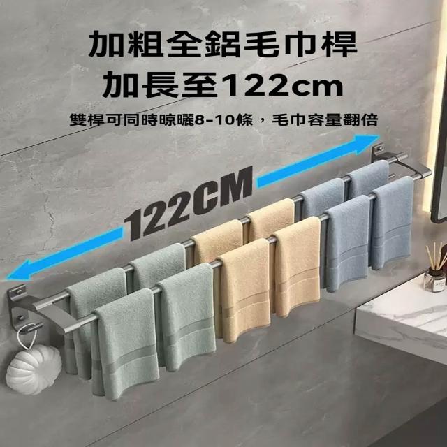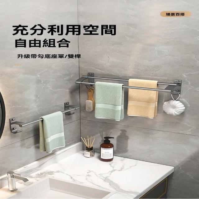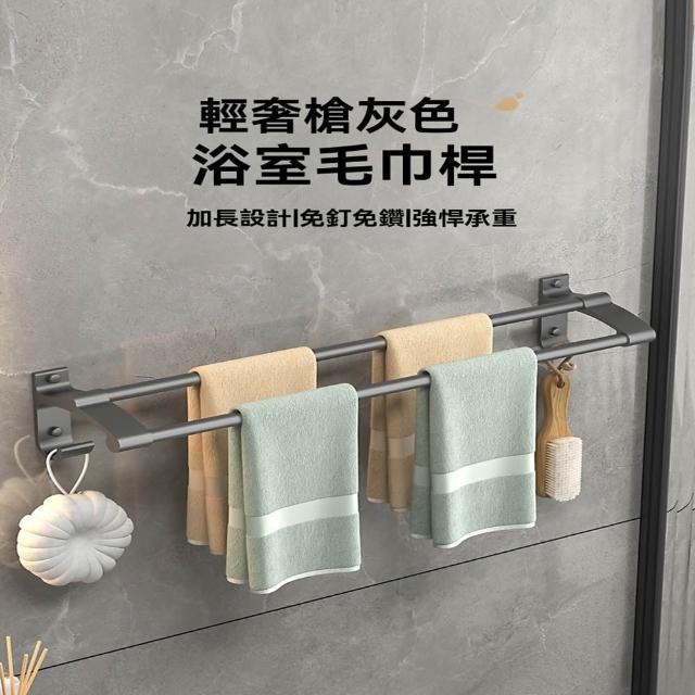 赫朗 加長雙桿毛巾架 浴巾架 毛巾架 浴室毛巾桿 太空鋁浴巾架 浴室收納架 置物架 掛鉤 帶鉤毛巾桿(太空鋁材質不生鏽/加長42-122cm可選)