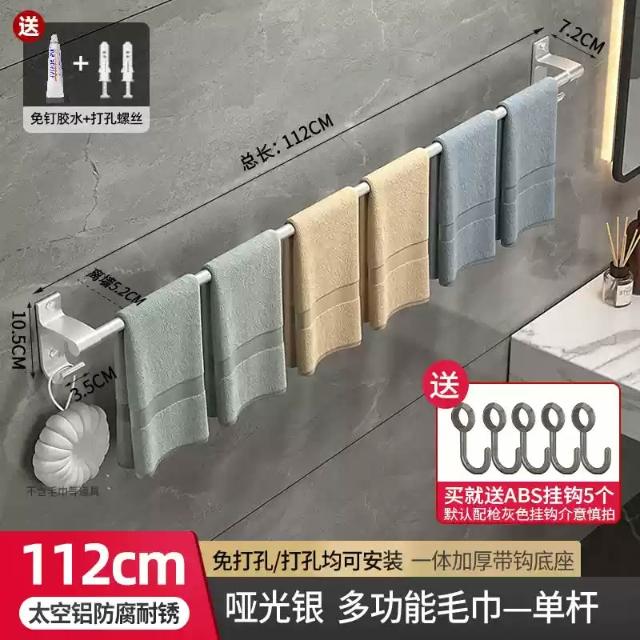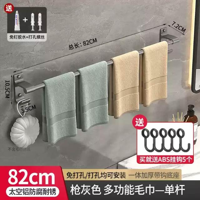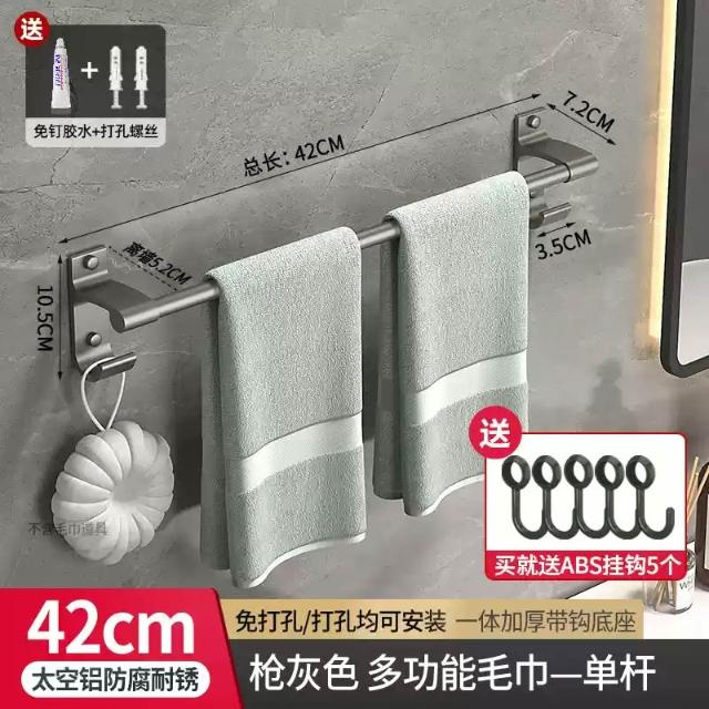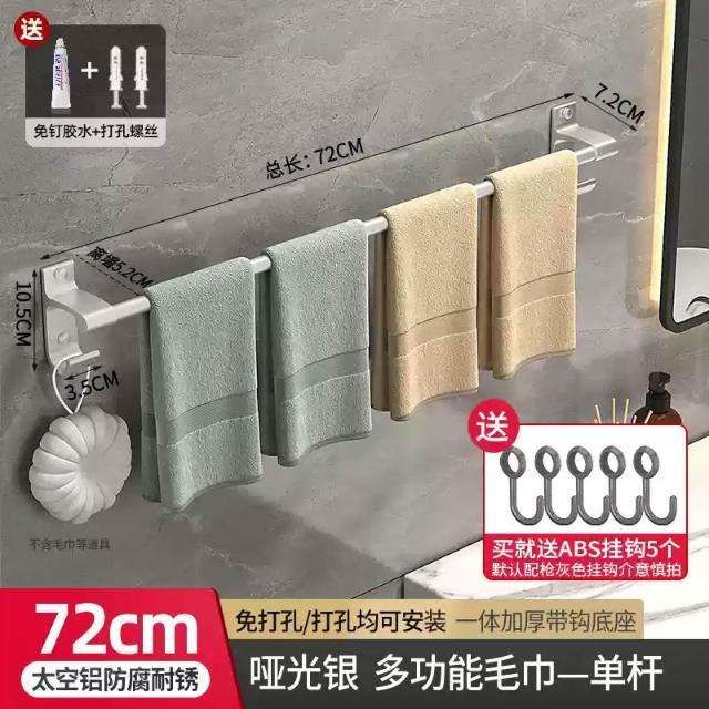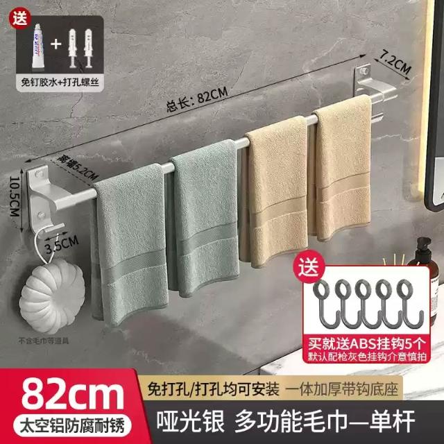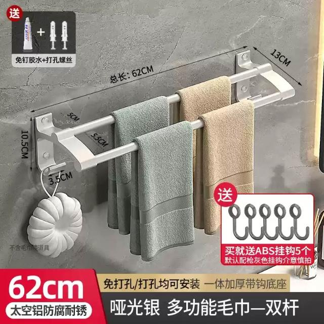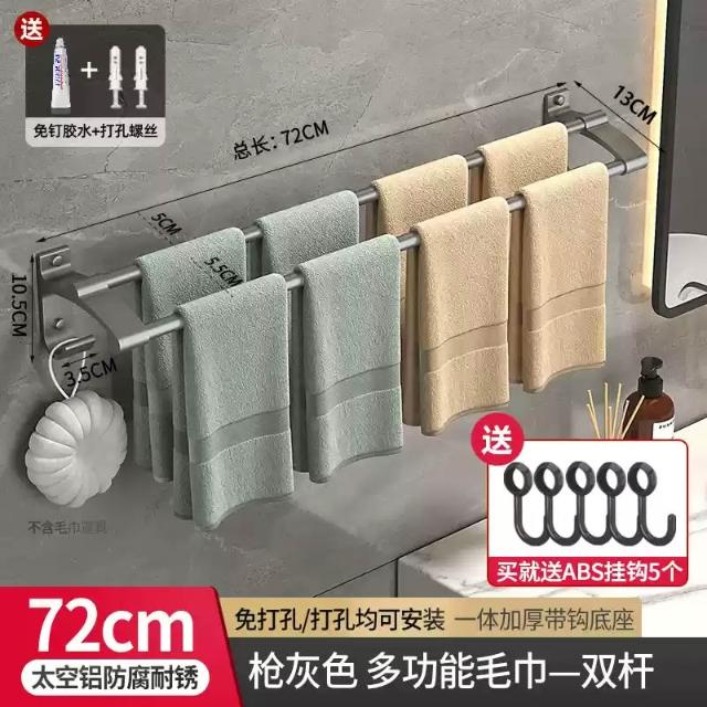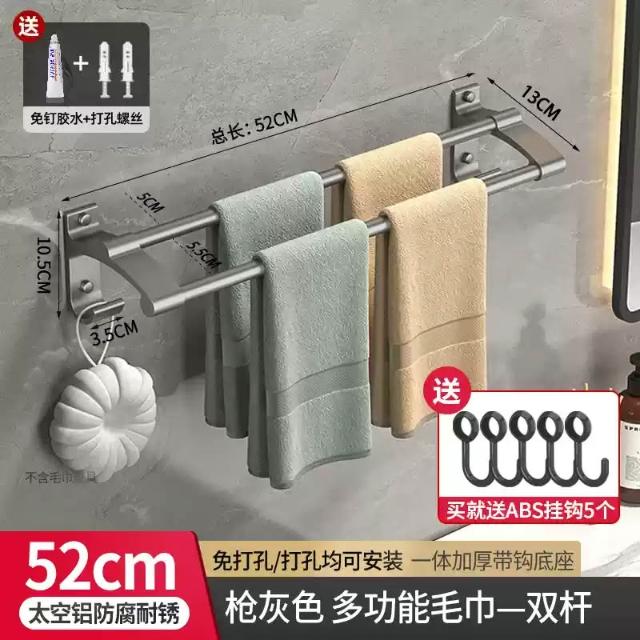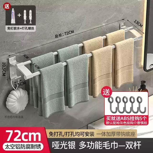 赫朗 加長雙桿毛巾架 浴巾架 毛巾架 浴室毛巾桿 太空鋁浴巾架 浴室收納架 置物架 掛鉤 帶鉤毛巾桿(太空鋁材質不生鏽/加長42-122cm可選)