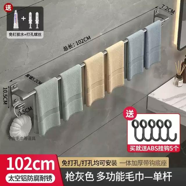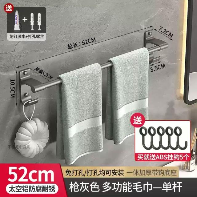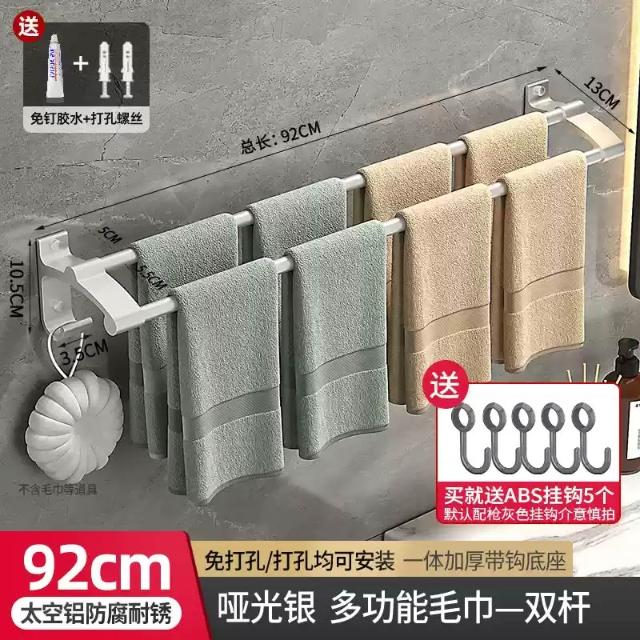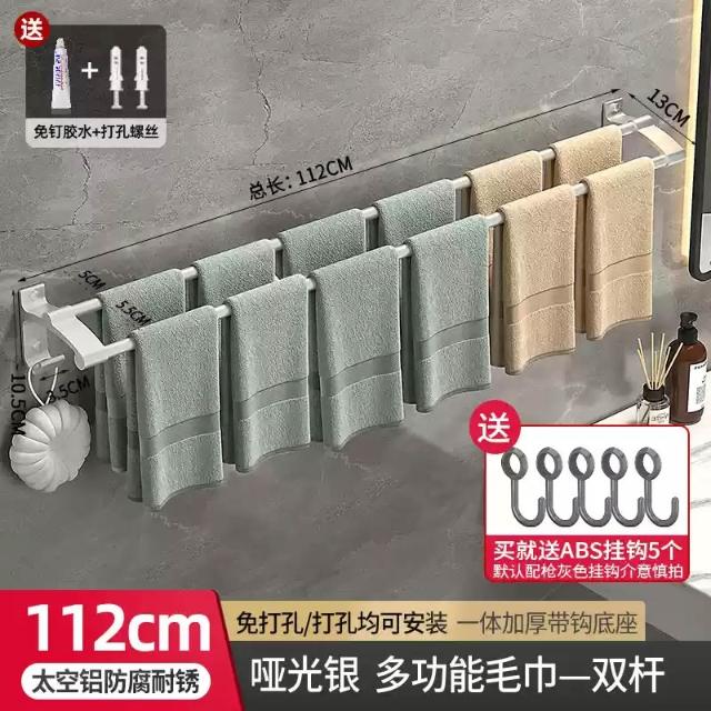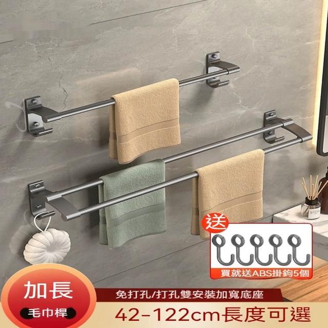 赫朗 加長雙桿毛巾架 浴巾架 毛巾架 浴室毛巾桿 太空鋁浴巾架 浴室收納架 置物架 掛鉤 帶鉤毛巾桿(太空鋁材質不生鏽/加長42-122cm可選)