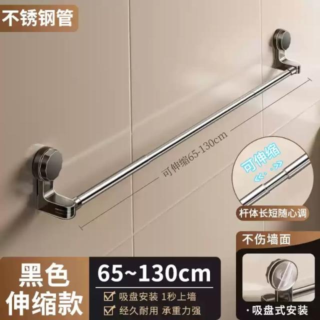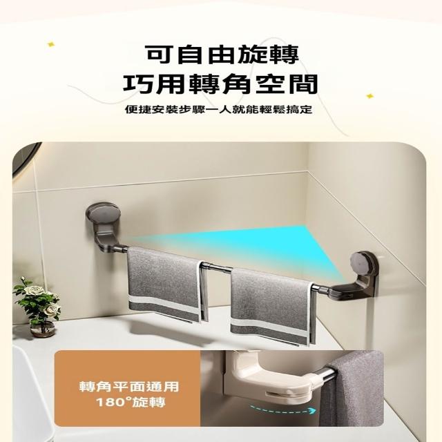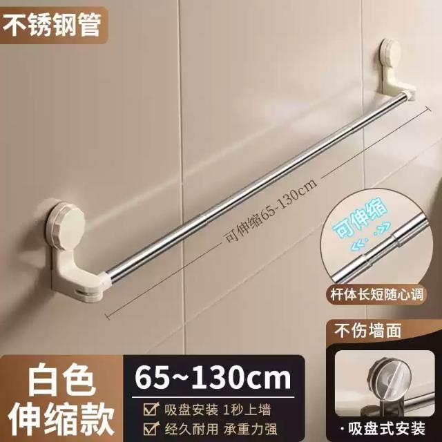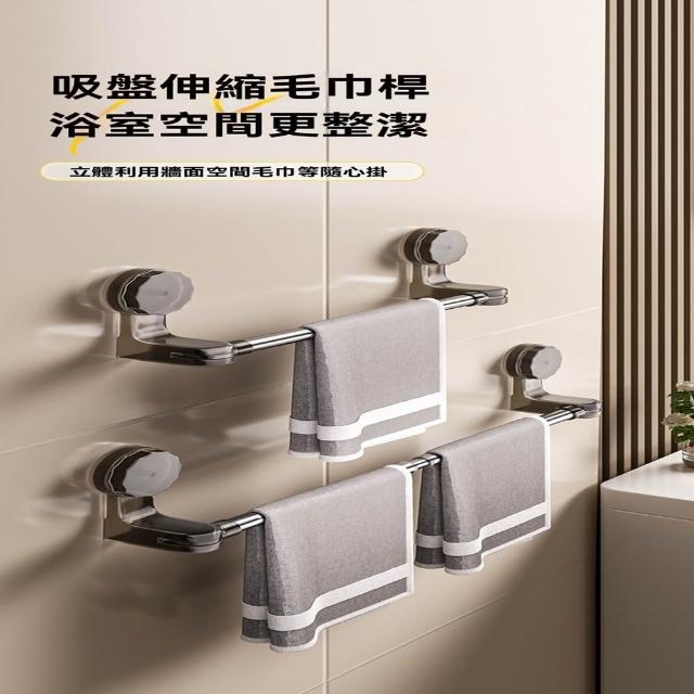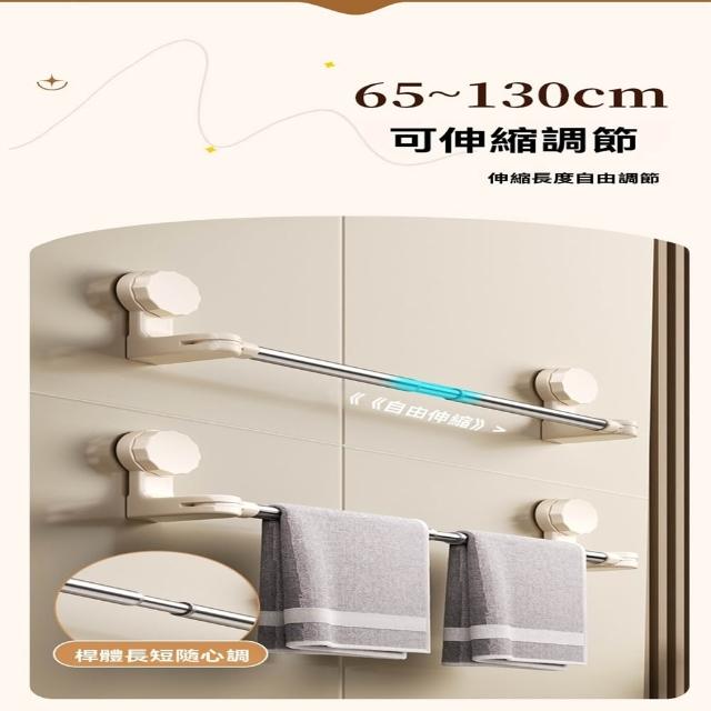 赫朗 吸盤式伸縮毛巾架 免打孔浴室毛巾架 吸盤式毛巾架 浴巾架 伸縮浴巾架 真空吸盤 免安裝(180°旋轉/65~130cm可伸縮調節)