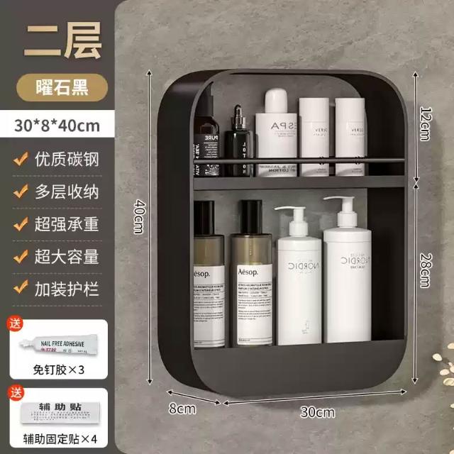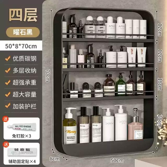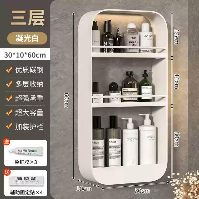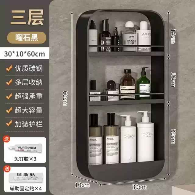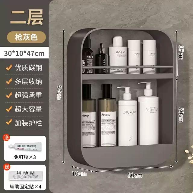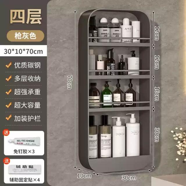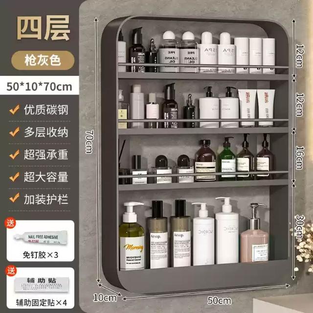 赫朗 洗漱用品收納架 浴室收納架 多層收納架 免安裝置物架 廚房收納 掛墻上置物櫃 壁掛架(優質碳鋼/多層收納/大容量)