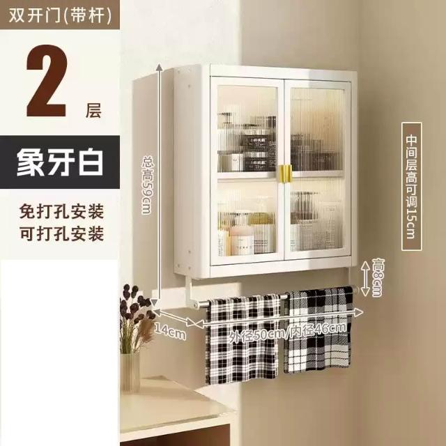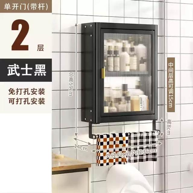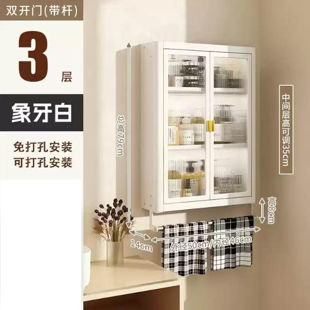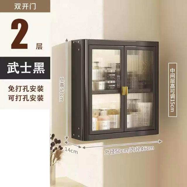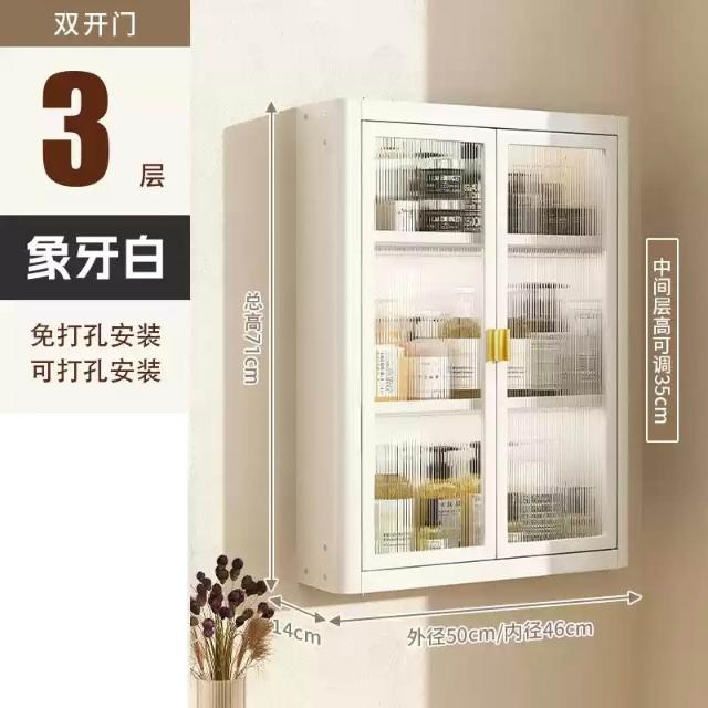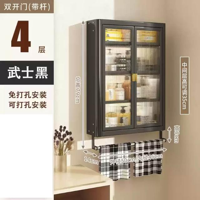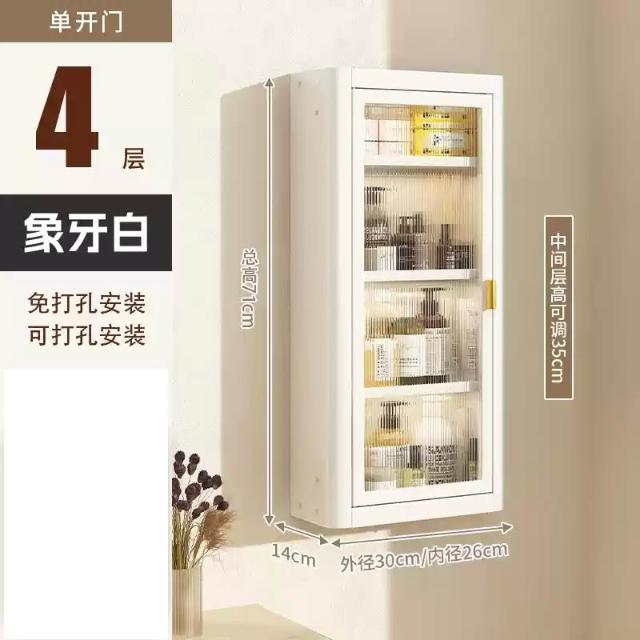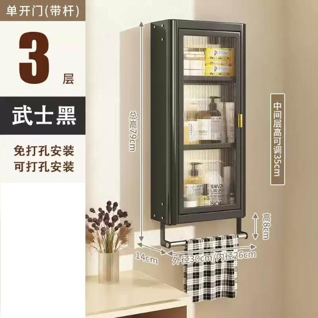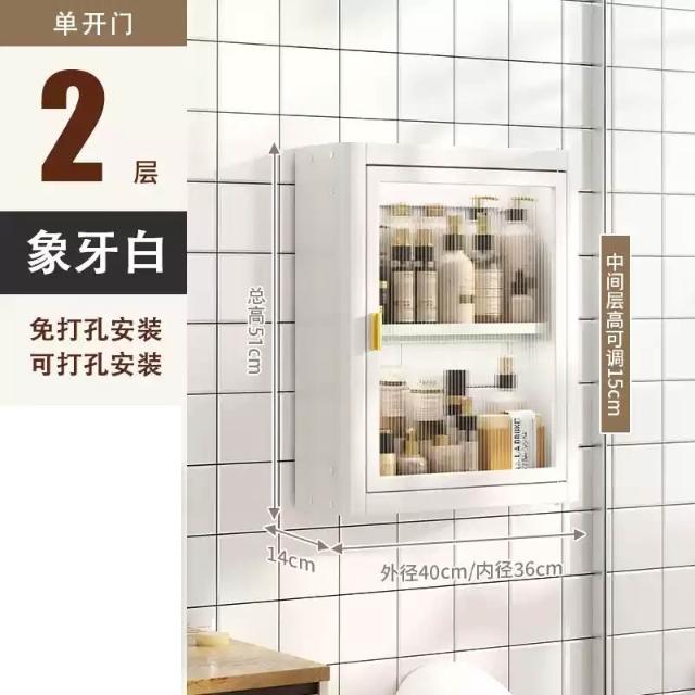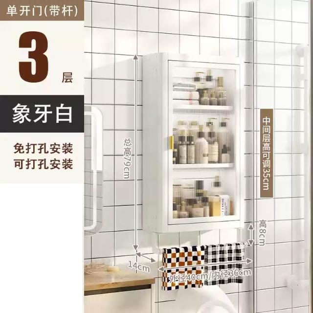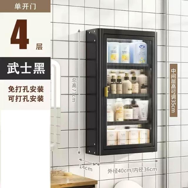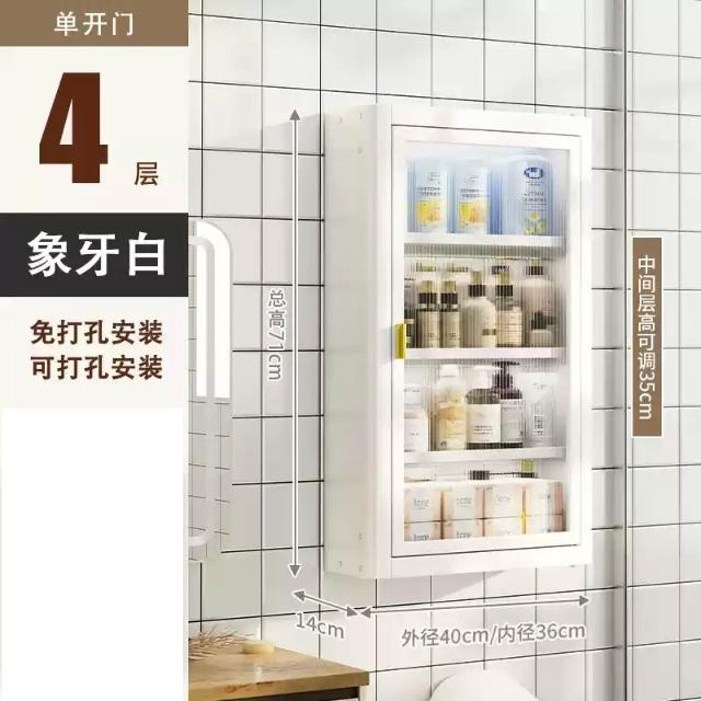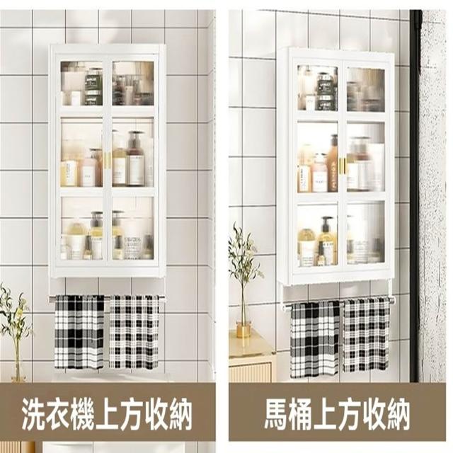 赫朗 浴室收納架 浴室置物櫃 儲物櫃 收納架 置物架 免打孔安裝(磁吸開和/層高自由調/承重50斤)