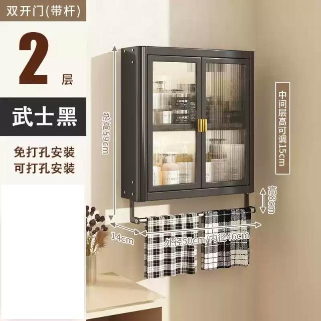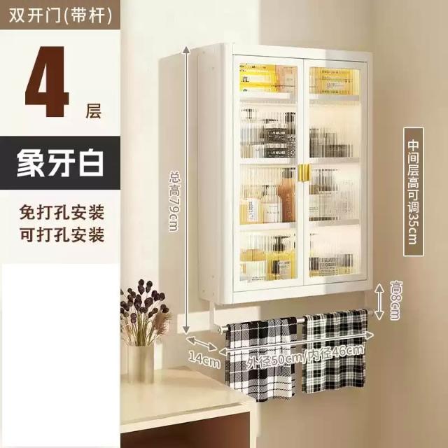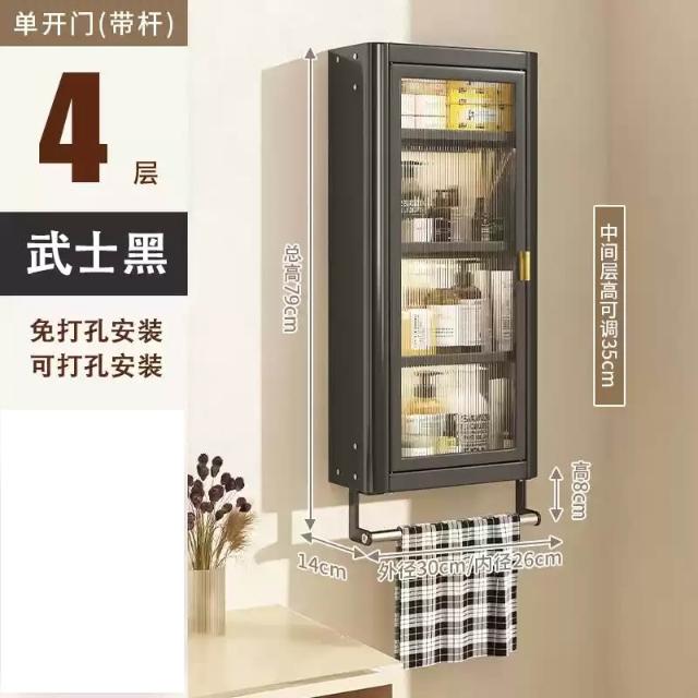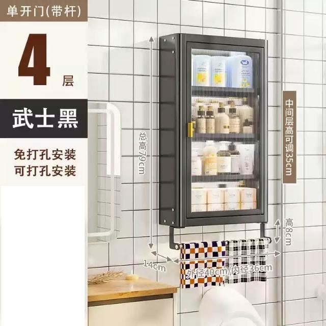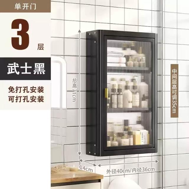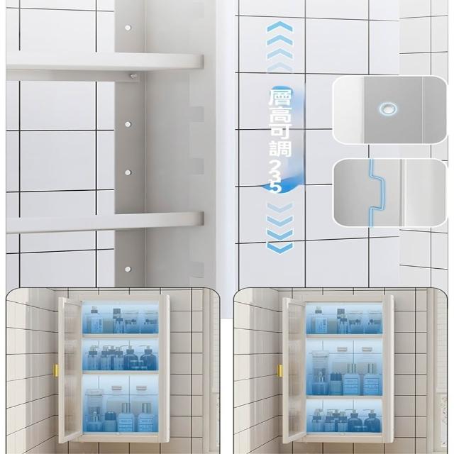 赫朗 浴室收納架 浴室置物櫃 儲物櫃 收納架 置物架 免打孔安裝(磁吸開和/層高自由調/承重50斤)