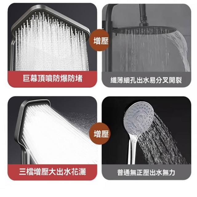 赫朗 一體式明裝淋浴花灑 淋浴花灑套裝 浴室淋浴設備 超大頂噴 掛牆式增壓噴頭花灑 冷熱雙控(可升降/增壓噴槍/360°旋轉龍頭)