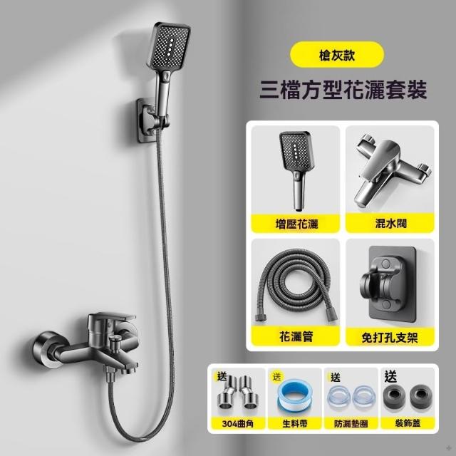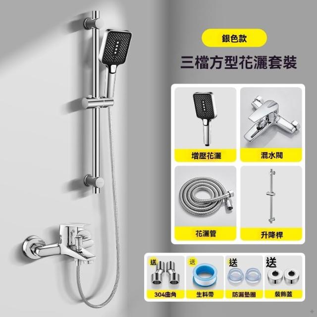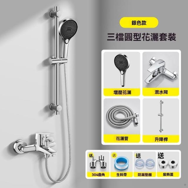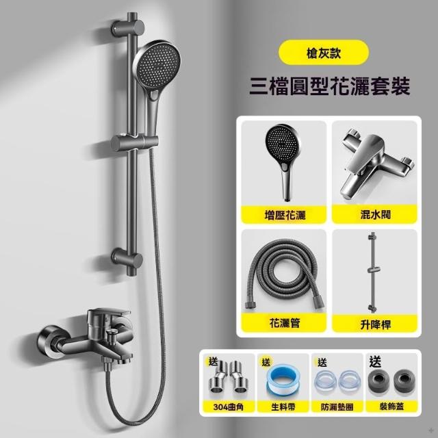 赫朗 升降增壓花灑套裝 浴室淋浴設備 淋浴花灑 增壓蓮蓬頭套裝 壁掛式花灑 可升降花灑(可90°調節/冷熱雙控/提拉切換雙出水)