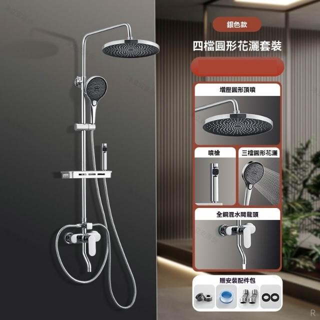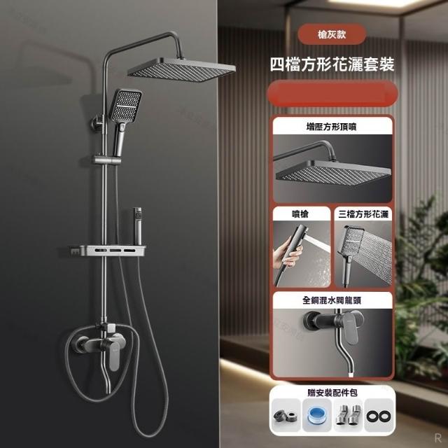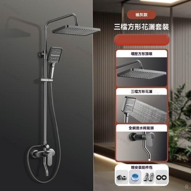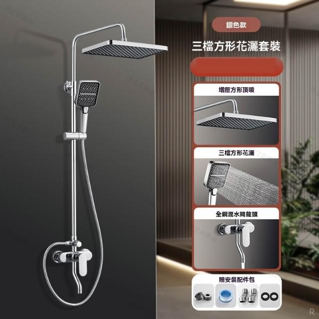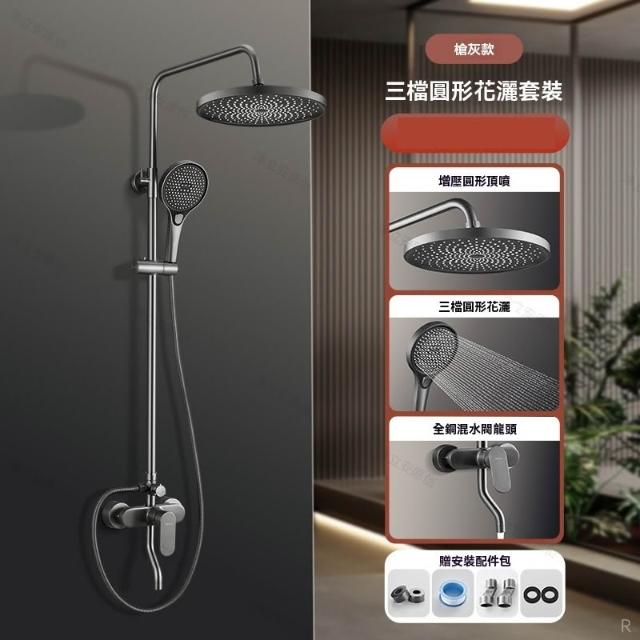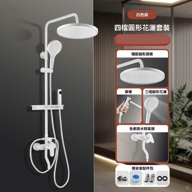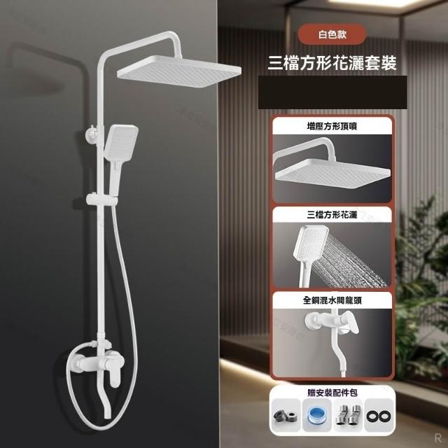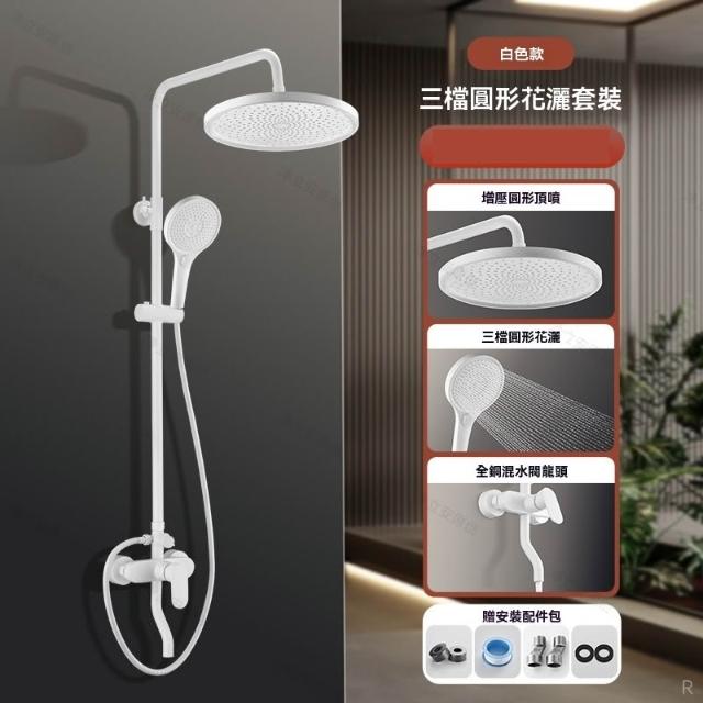 赫朗 奶油風淋浴花灑 浴室淋浴花灑套裝 淋浴設備 增壓花灑 大頂噴蓬蓬頭 雙花灑套裝(230mm頂噴/雙花灑龍頭/冷熱雙控)