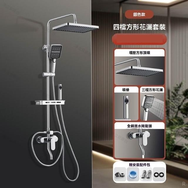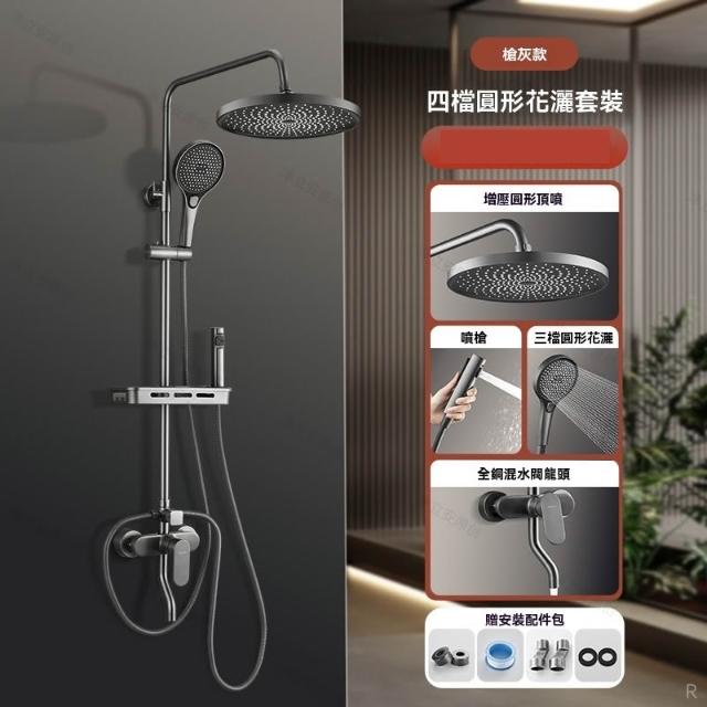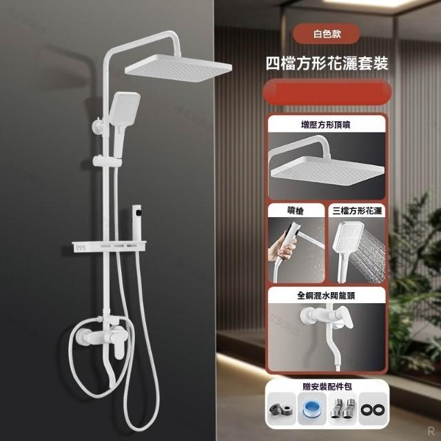 赫朗 奶油風淋浴花灑 浴室淋浴花灑套裝 淋浴設備 增壓花灑 大頂噴蓬蓬頭 雙花灑套裝(230mm頂噴/雙花灑龍頭/冷熱雙控)