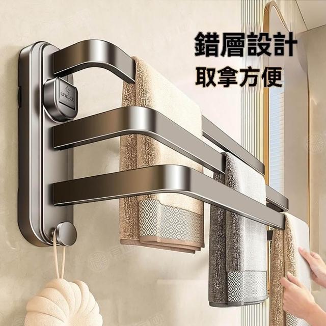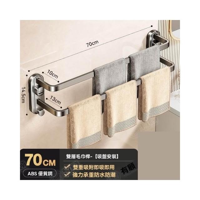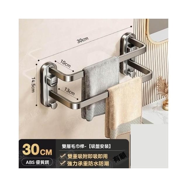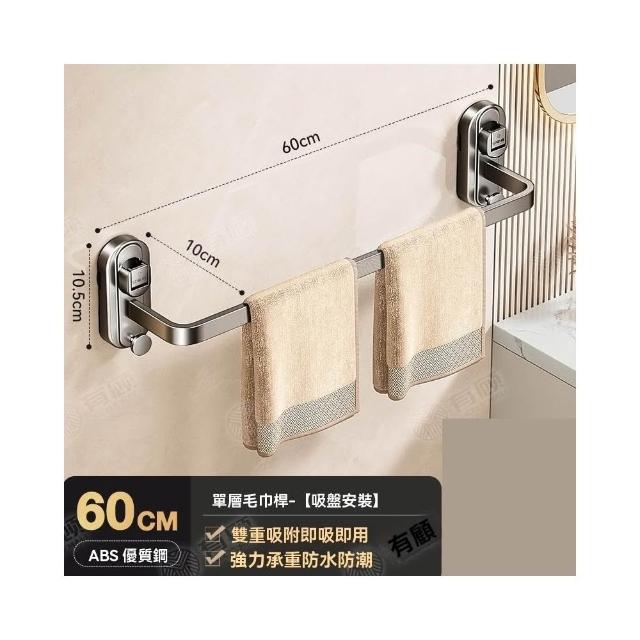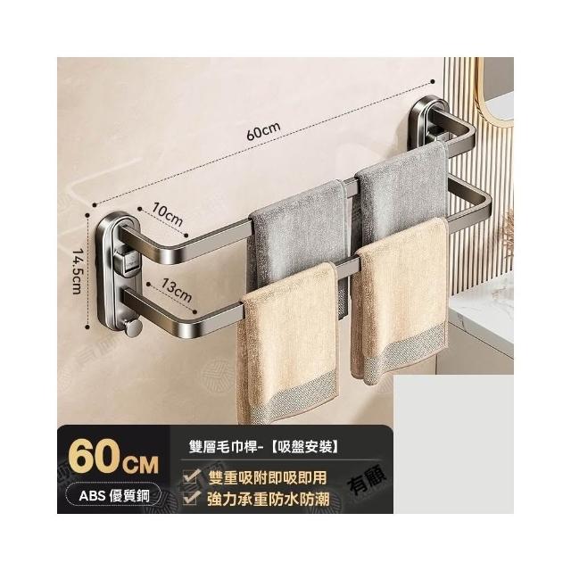 赫朗 吸盤式毛巾架 免打孔毛巾架 浴室收納架 浴室毛巾架 多層毛巾掛桿 浴巾架 毛巾桿 無痕掛桿(拆卸無痕/即吸即用)