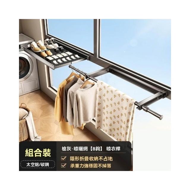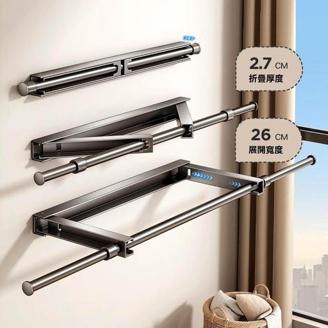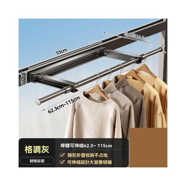 赫朗 折疊伸縮晾衣桿 免打孔曬衣架 晾衣架陽臺桿 掛衣桿 隱形伸縮曬衣架(隱形折疊收納/桿體可伸縮62-115cm)