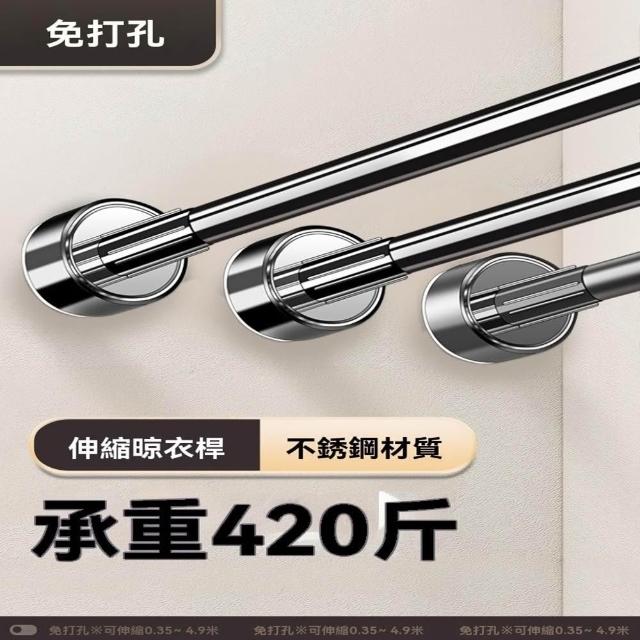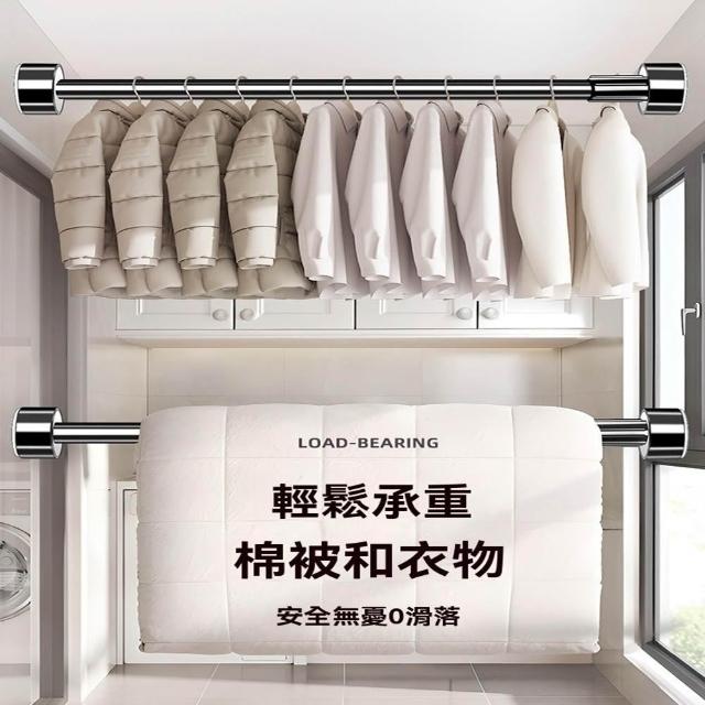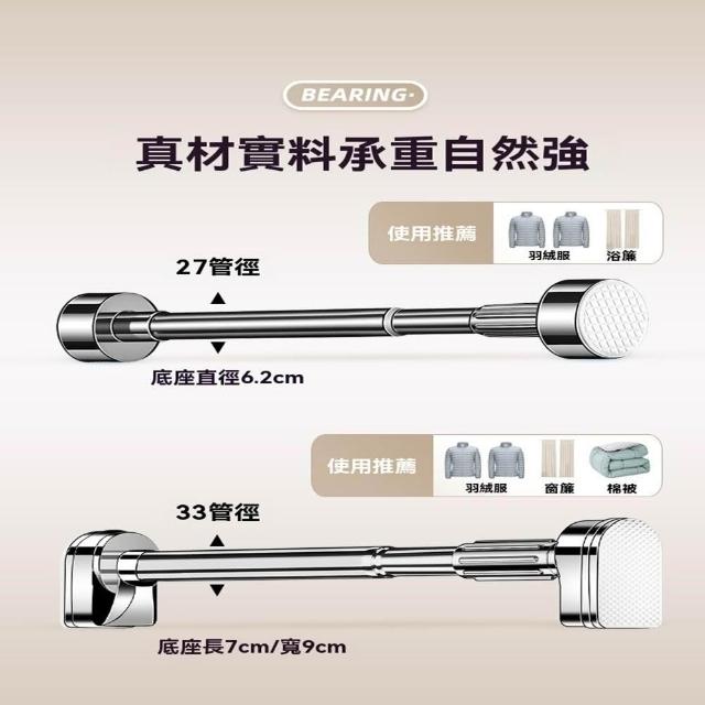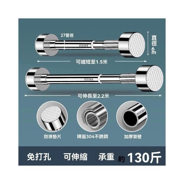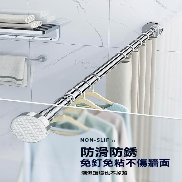 赫朗 圓管吸盤晾衣桿 伸縮桿 晾衣架 窗簾桿 伸縮桿不鏽鋼 衣櫃掛桿 浴簾桿(304不鏽鋼/免打孔/底座可拆卸)