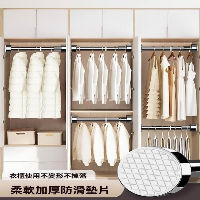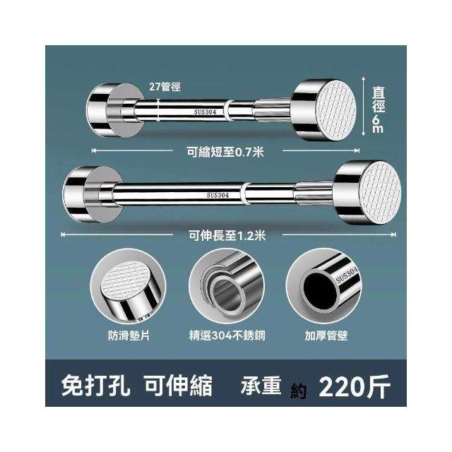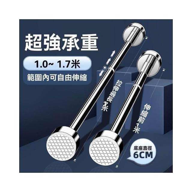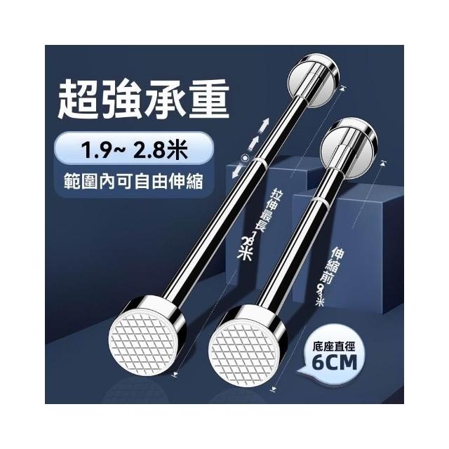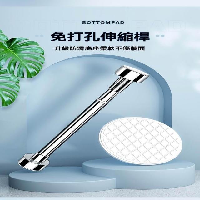 赫朗 圓管吸盤晾衣桿 伸縮桿 晾衣架 窗簾桿 伸縮桿不鏽鋼 衣櫃掛桿 浴簾桿(304不鏽鋼/免打孔/底座可拆卸)
