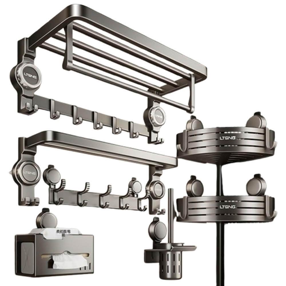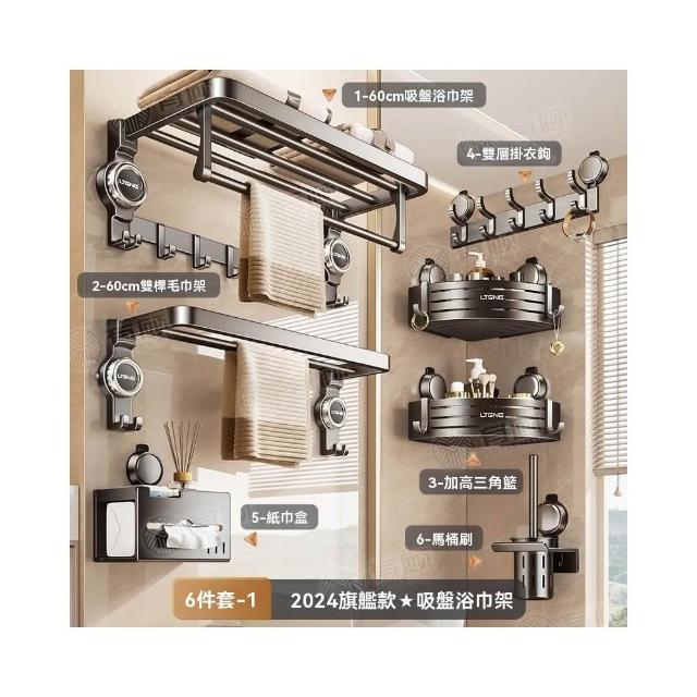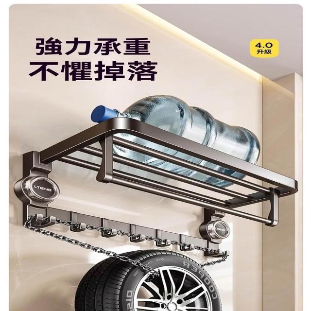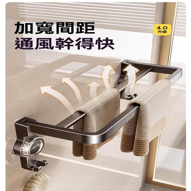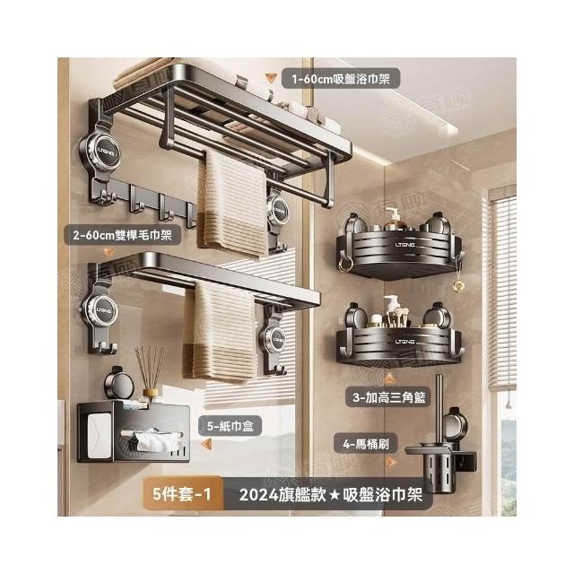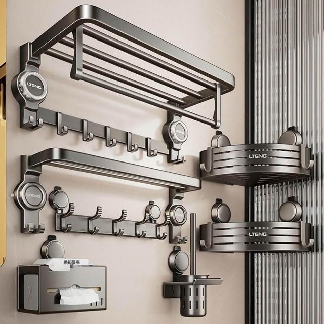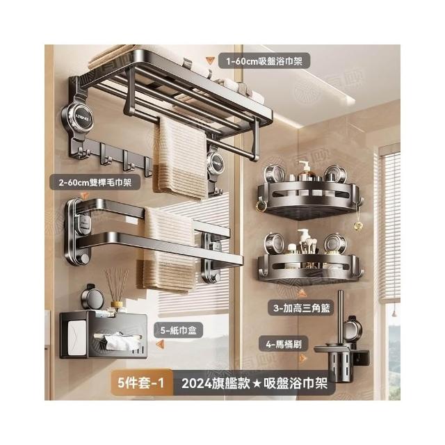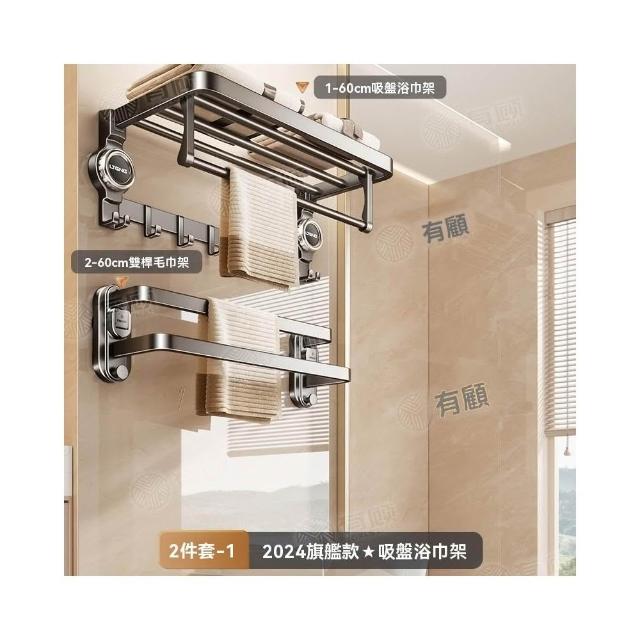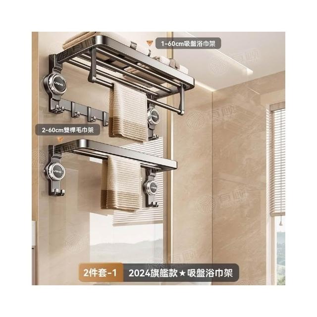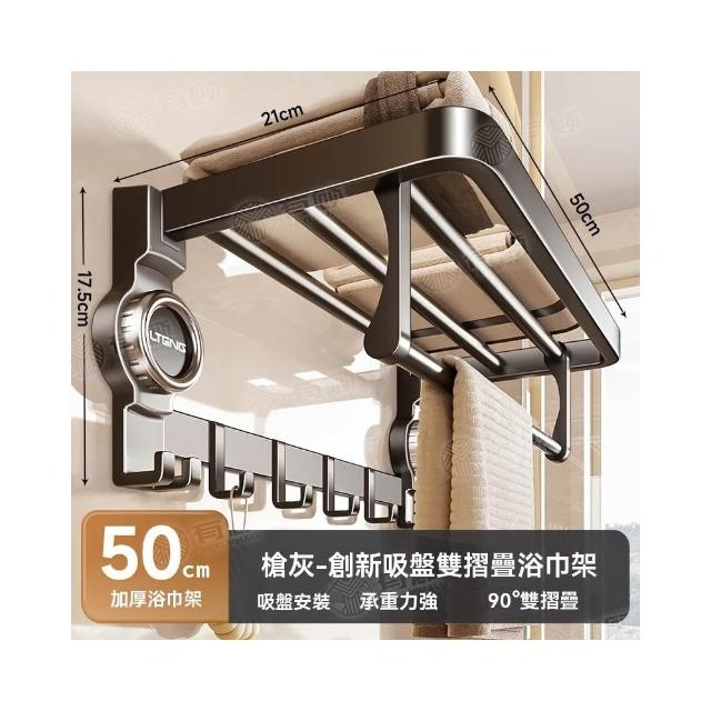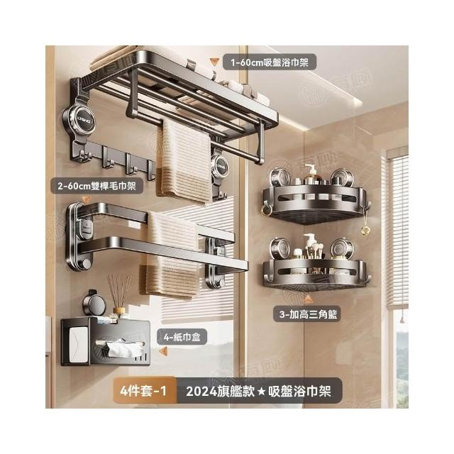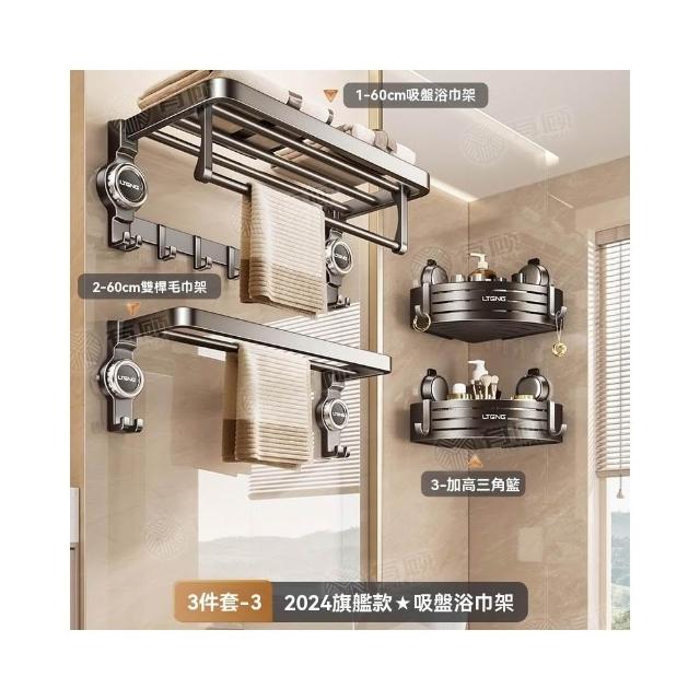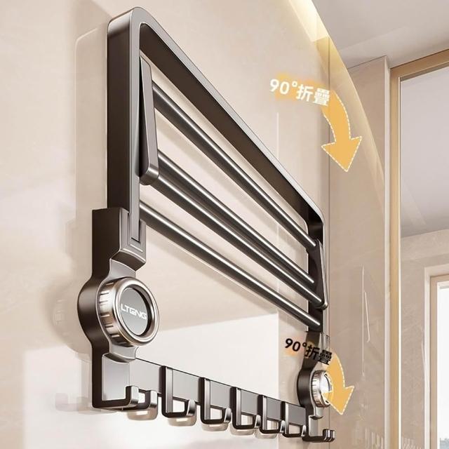 赫朗 一體收納浴巾架 浴巾架 毛巾架 浴室收納架 三角架 轉角架 太空鋁材質(90°雙折疊/層高可調/吸盤安裝)