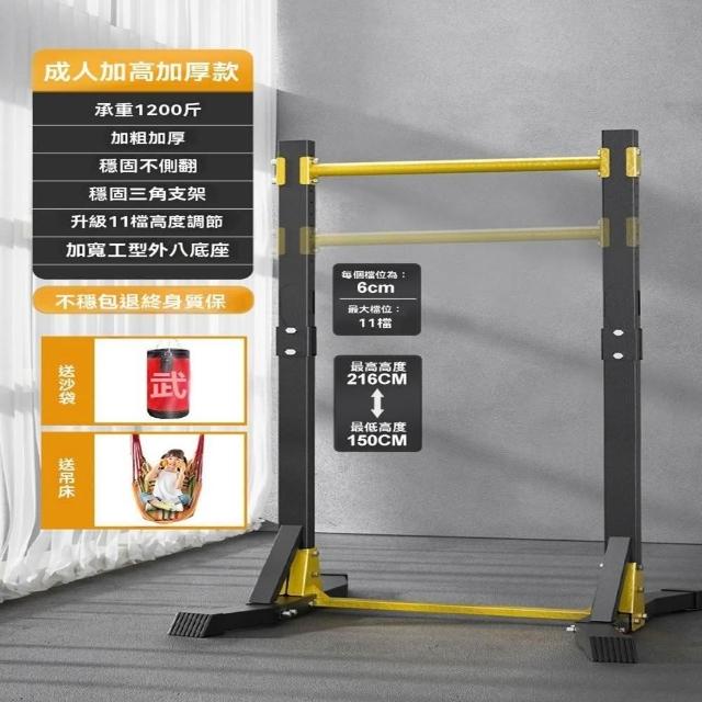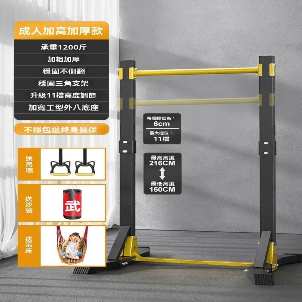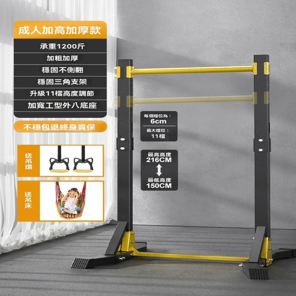赫朗 引體向上器 室內單杠 雙桿 單杠落地 兒童拉伸吊杠 健身器材(承重1200斤/高度150-215可調/穩固不側翻)