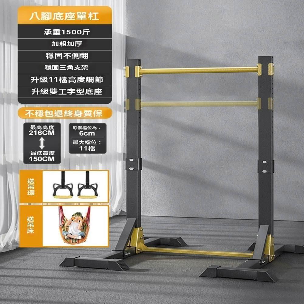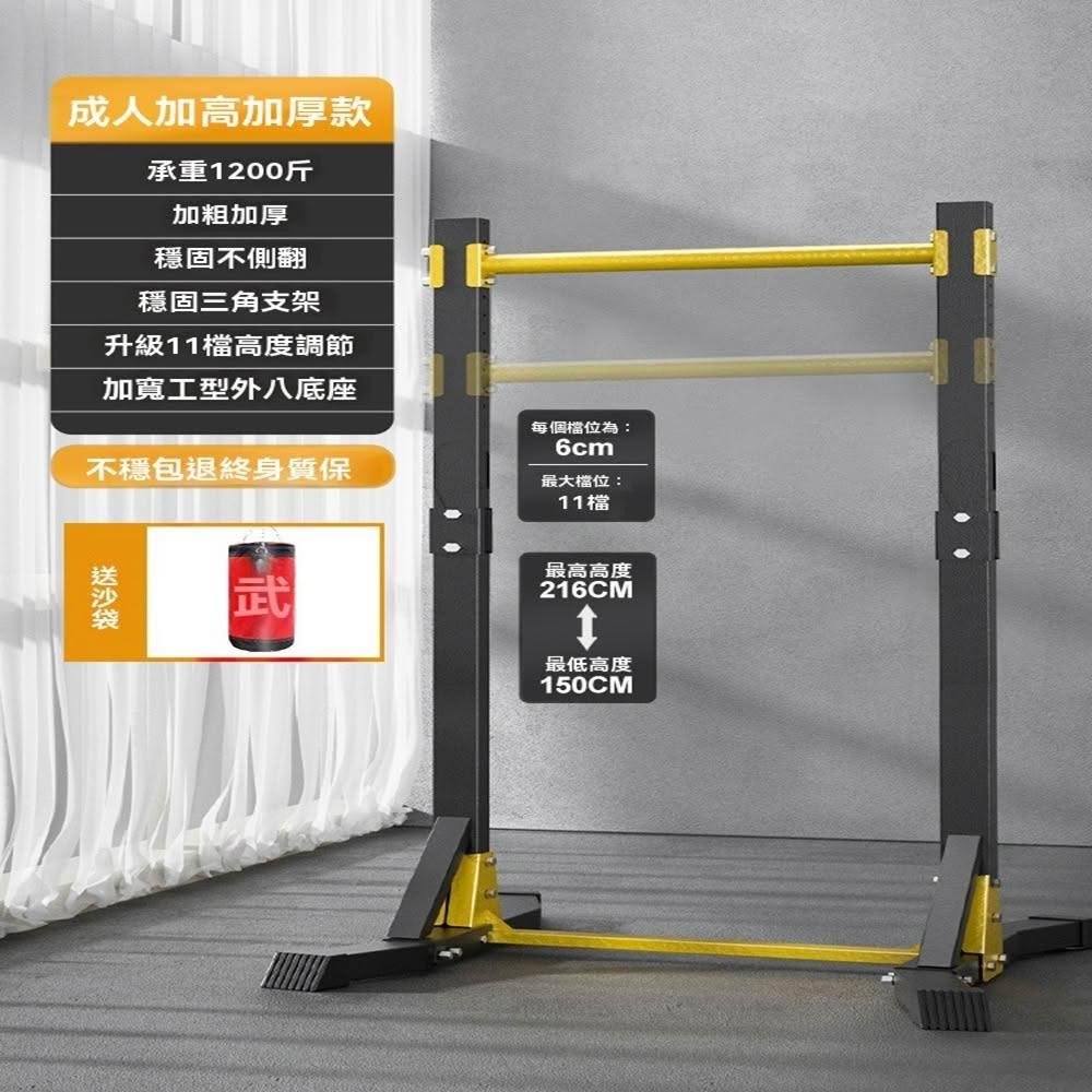赫朗 引體向上器 室內單杠 雙桿 單杠落地 兒童拉伸吊杠 健身器材(承重1200斤/高度150-215可調/穩固不側翻)