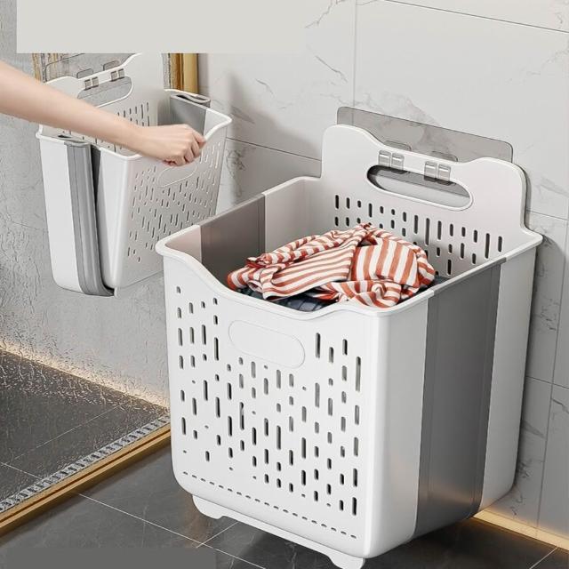 赫朗 壁掛髒衣籃 浴室可摺疊衣物籃 洗衣籃 衣服收納籃 折疊洗衣籃 洗衣推車 髒衣籃 置物籃 (一體式提手/可折疊收納)