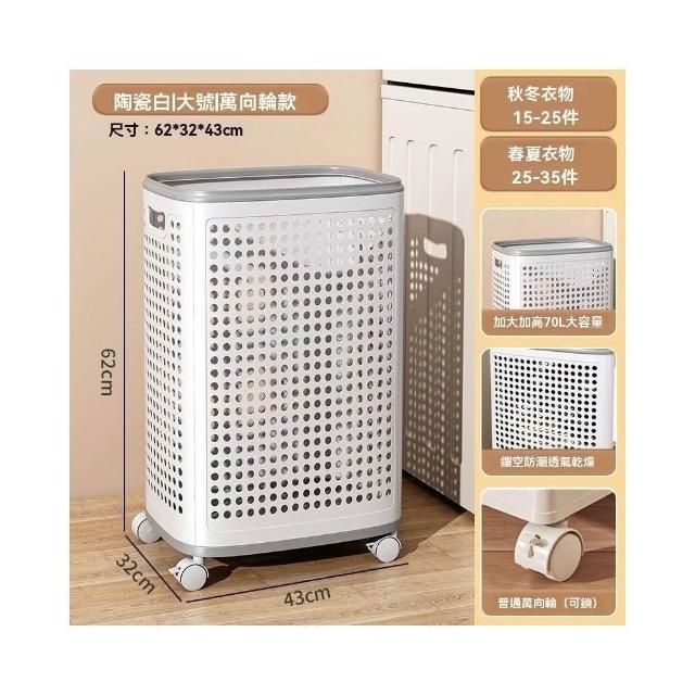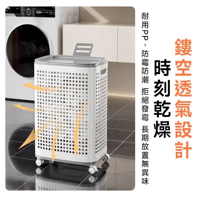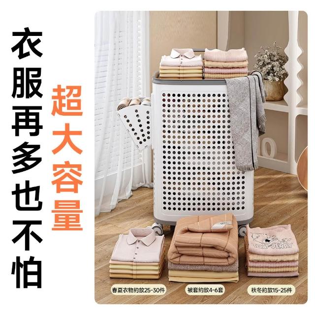 赫朗 可移動髒衣籃 洗衣籃 收納箱 置物箱 衣服收納框 一周髒衣收納(免彎腰手提/靜音剎車輪/帶防塵蓋)