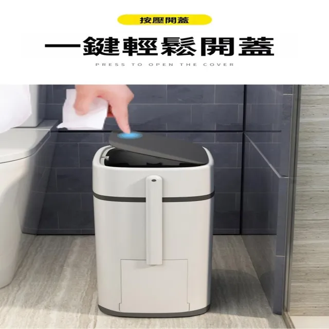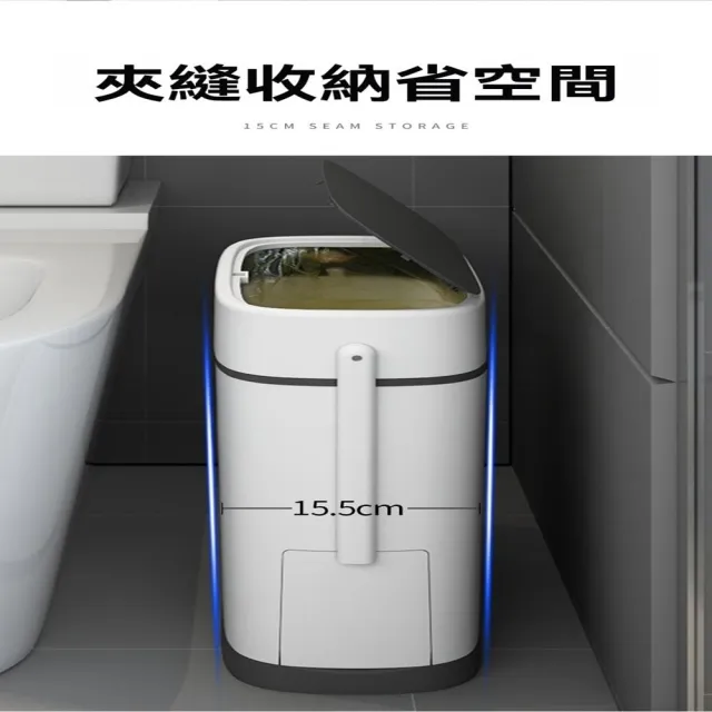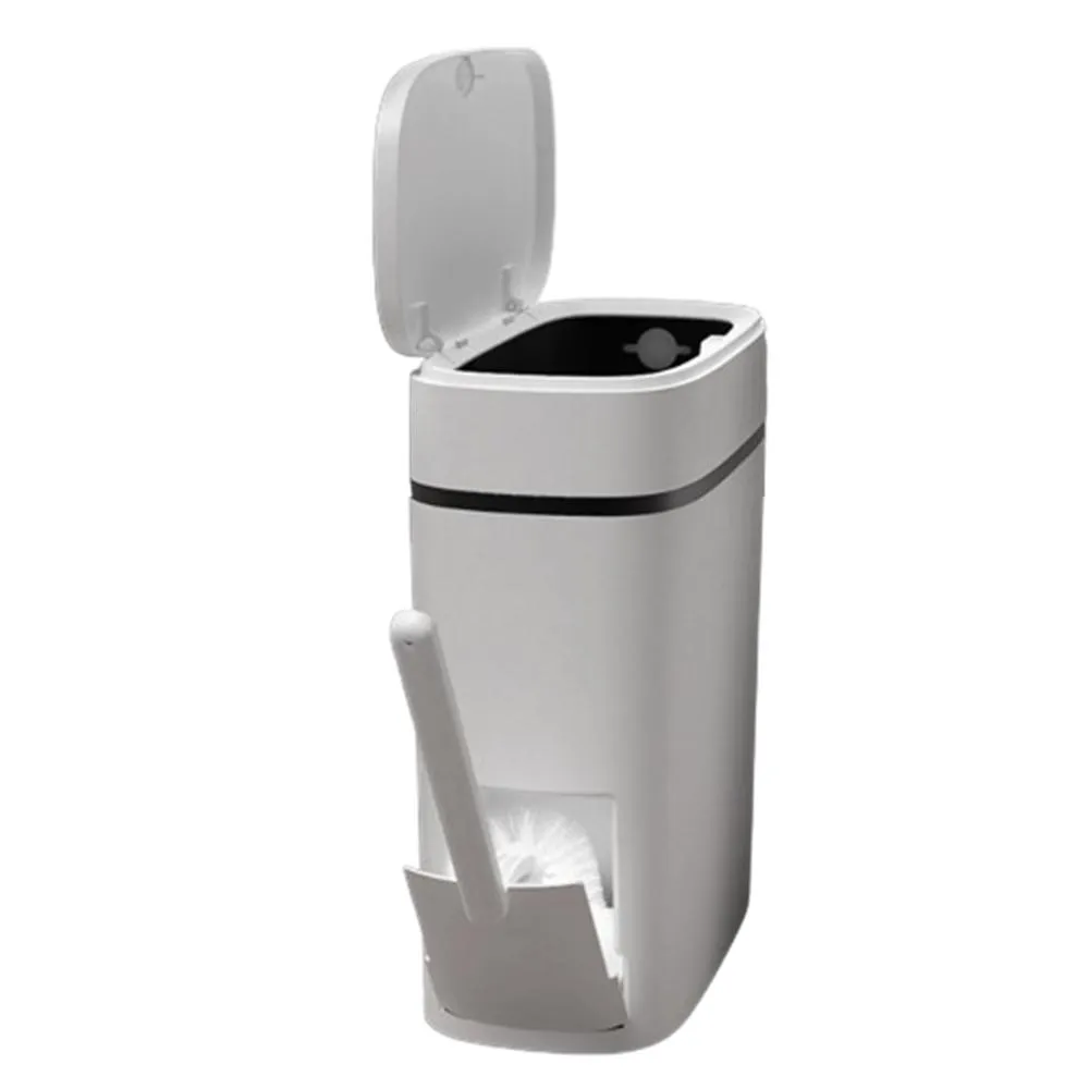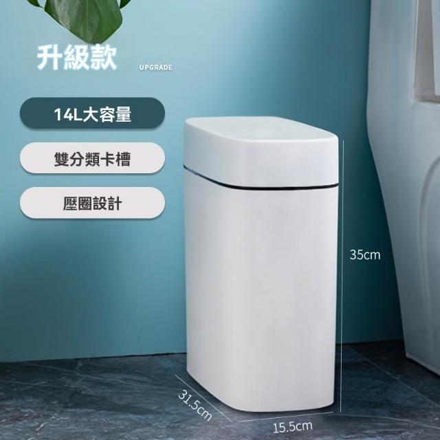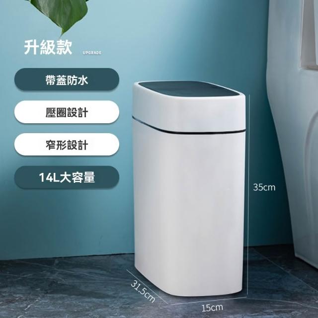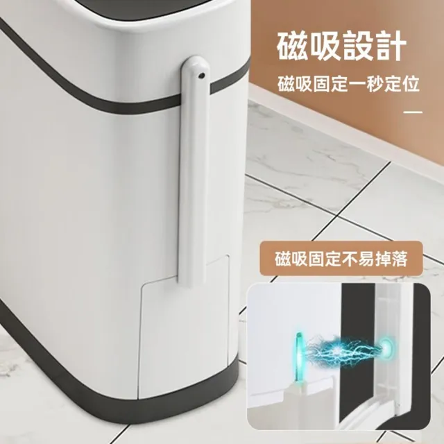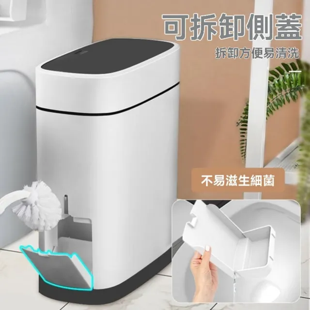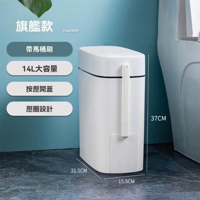 赫朗 夾縫一體式垃圾桶 浴室垃圾桶 廁所垃圾桶 夾縫 窄縫垃圾桶 馬桶旁垃圾桶 垃圾桶 按壓式垃圾桶(14L/側帶馬桶刷/磁吸固定)